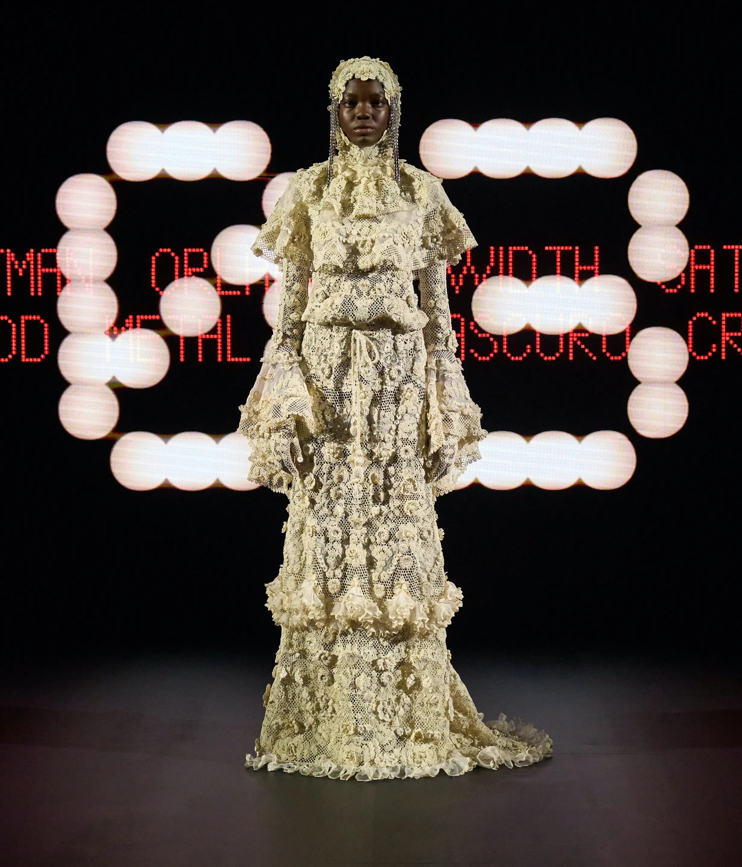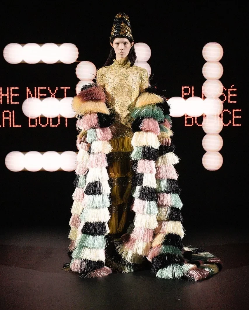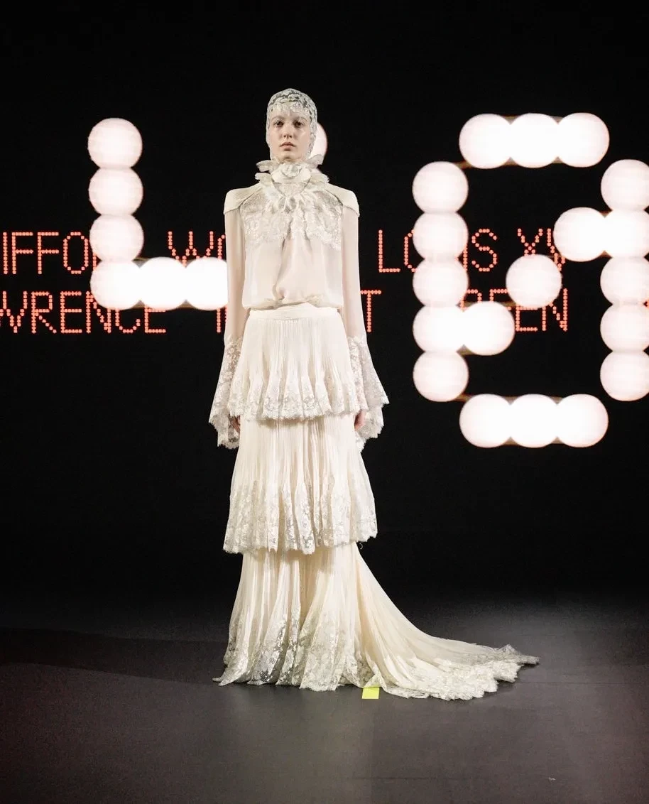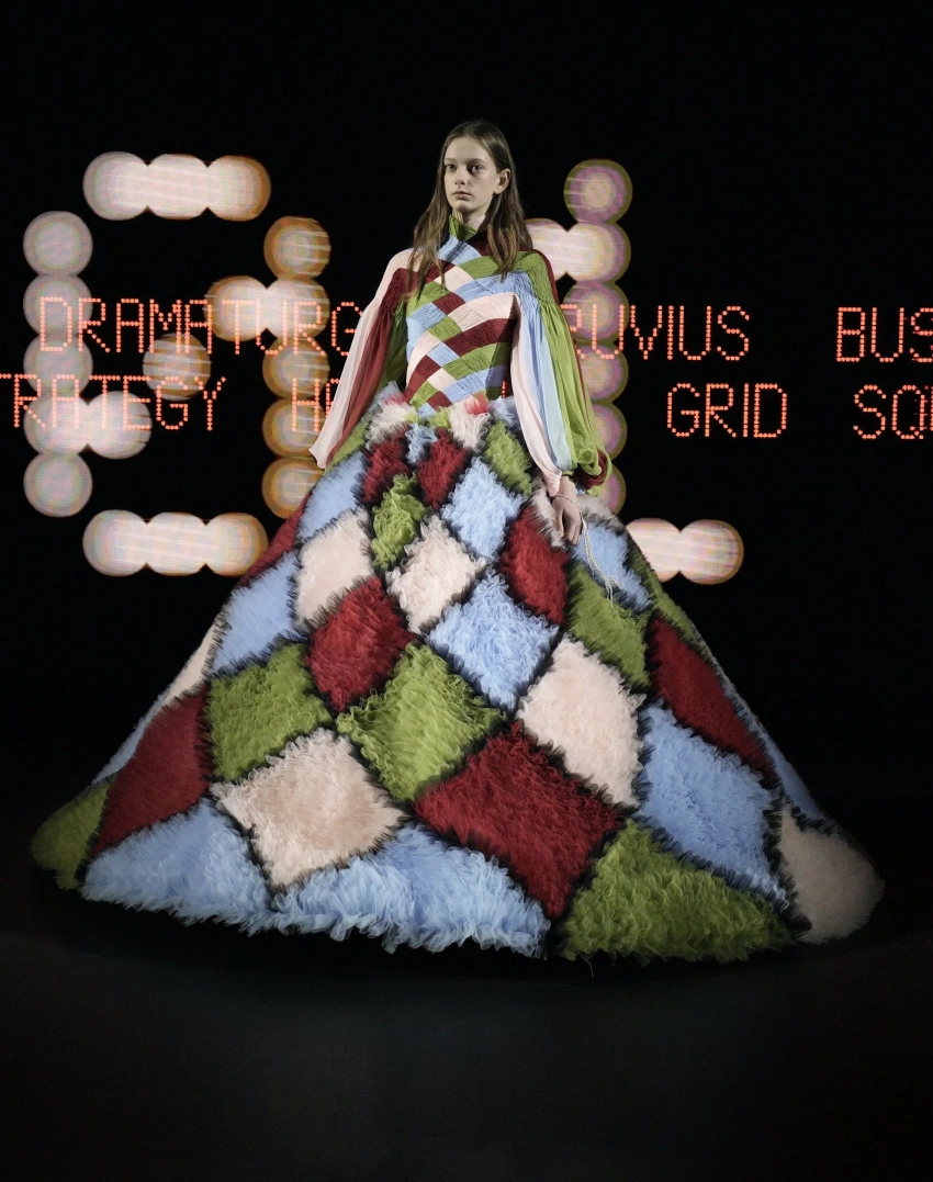 Лу Дуайон/Фото: oxana_bondarenko/Instagram*Новый креативный директор Valentino Алессандро Микеле представил 48 кутюрных луков. Модели выходили на подиум и останавливались в одной точке, чтобы зрители успевали рассмотреть детали. Дизайнер вдохновлялся архивами Valentino, но и, конечно, привнёс свой фирменный почерк: обилие рюшей, цветочная тематика и любимая Алессандро эстетика барокко.