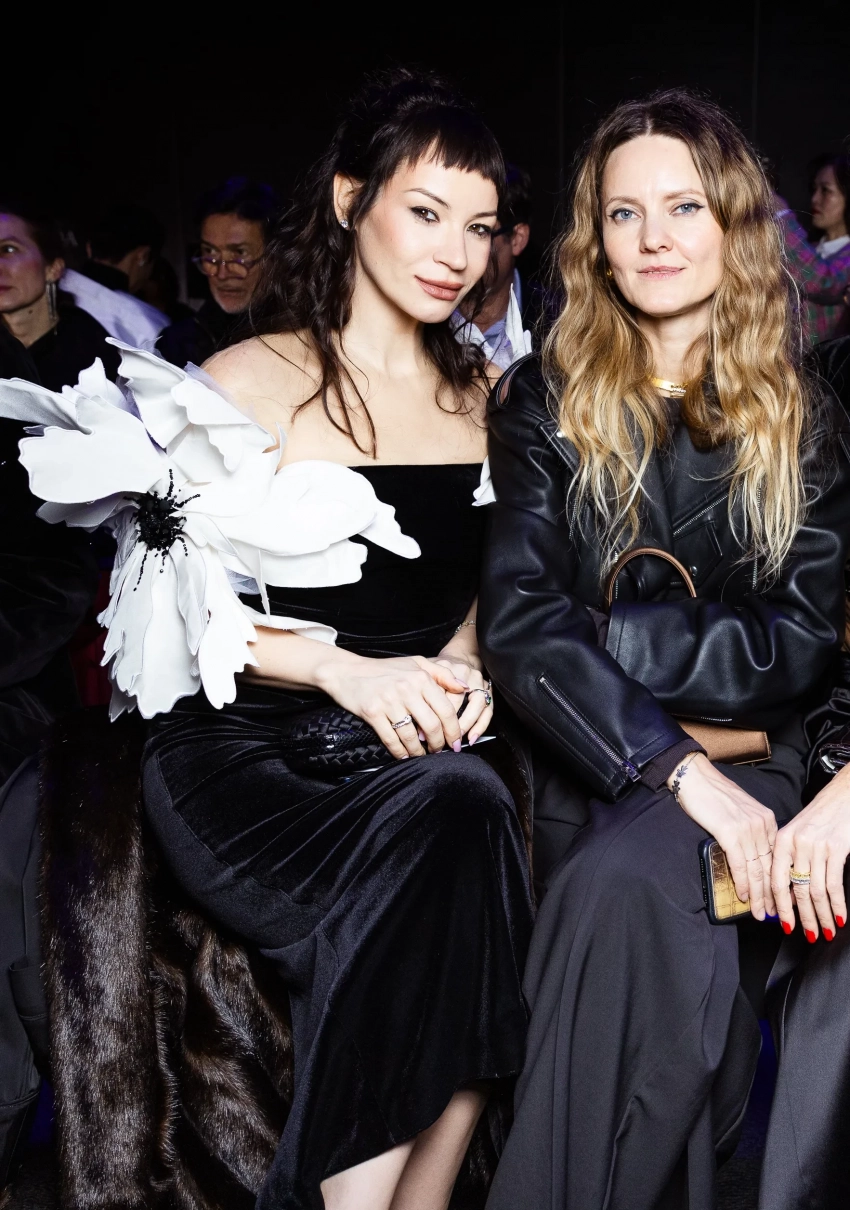 Ксения Шипилова и Оксана Бондаренко/Фото: oxana_bondarenko/Instagram*Вторым самым ожидаемым шоу стал Jean Paul Gaultier. Кутюрную коллекцию для модного дома создал Людовик де Сен-Сернен, а по соседству с Кайли Дженнер и Риком Оуэнсом сидели Ида Галич и Татьяна Корсакова. Ида надела корсет и джинсы с вышивкой от Даниила Анцифирова, дополнив образ сумкой Jean Paul Gaultier, а Корсакова выбрала кожаные трусы, микрожакет и кожаные ботфорты.