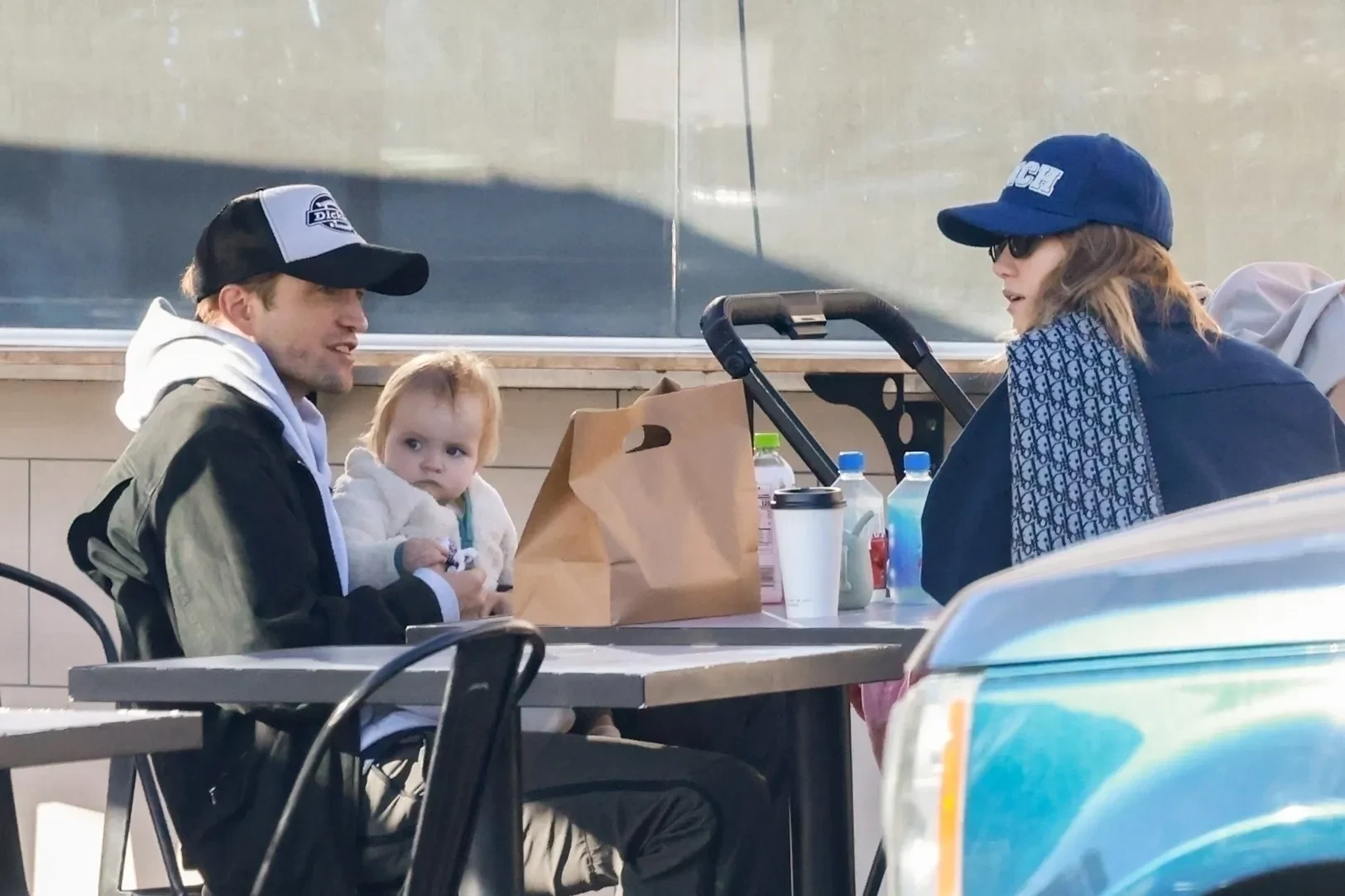 Семью застали за столиком уличного кафе, где они остановилась, чтобы покормить ребёнка. Фотографы запечатлели, как не подозревающий о съёмке актёр общается с дочерью. 38-летний Паттисон брал её на руки, развлекал игрушкой, строил рожицы и даже самостоятельно покормил с ложки. 33-летняя Сьюки также принимала участие в развлечении дочери, в какой-то момент посадив её себе на плечи.