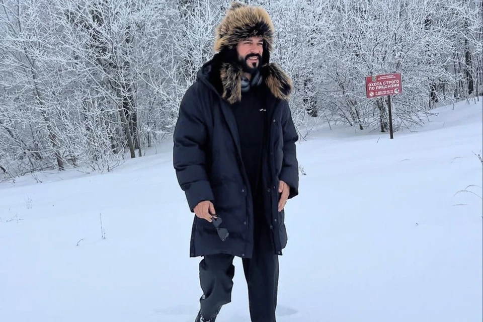Звезда турецких сериалов Бурак Озчивит снова прилетел в Россию: прогулялся в шапке-ушанке по снежному лесу