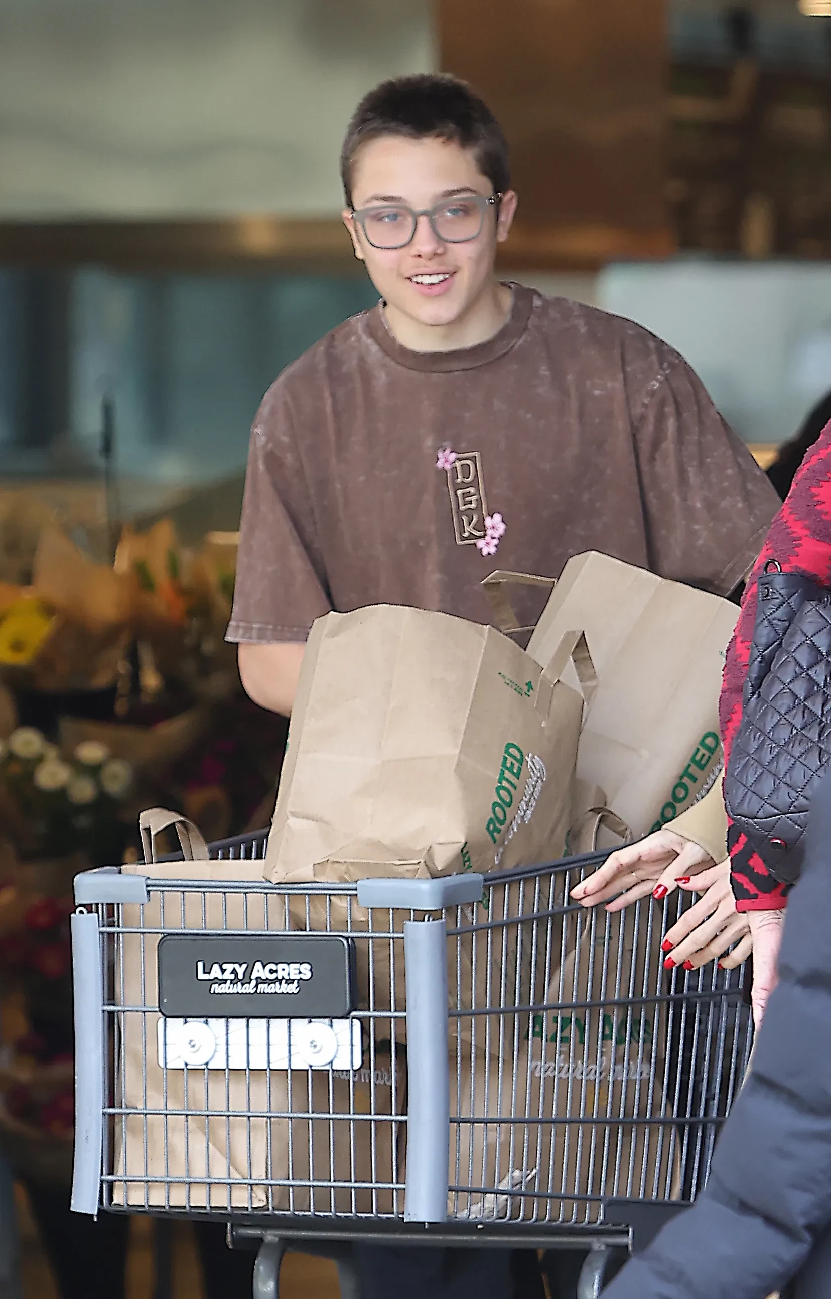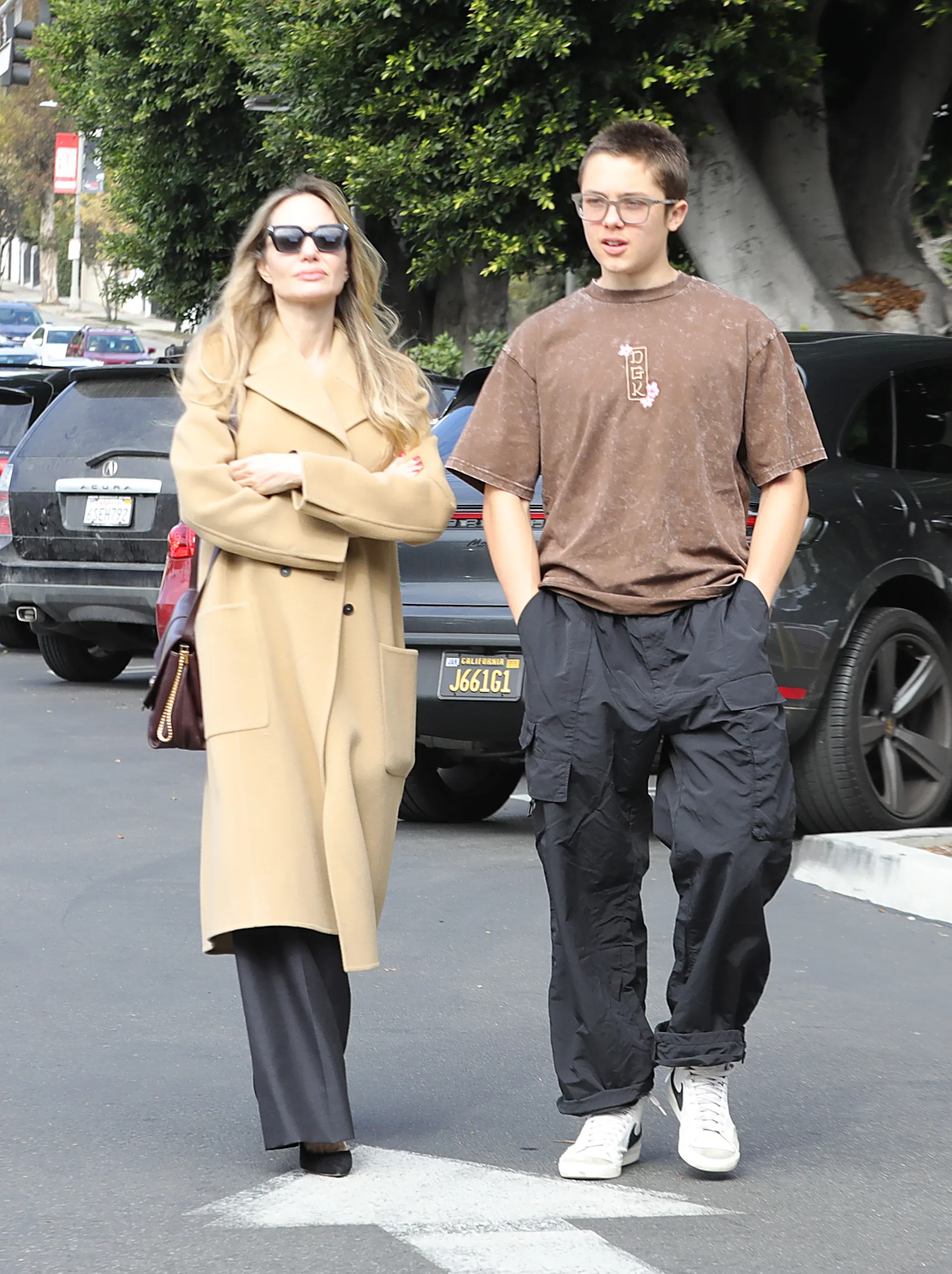 Анджелину Джоли заметили вместе с 16-летним сыном Ноксом во время совместного похода за покупками. 49-летняя актриса была одета в тёмно-серые брюки в пол и светлую майку. Сверху она накинула тренч песочного цвета, а закончили образ чёрные туфли на каблуке и солнцезащитные очки. Нокс выбрал для выхода коричневую оверсайз футболку, свободные брюки карго и белые кроссовки. Ранее пользователи сети отмечали, как сильно Нокс вырос и стал похож на своего отца Брэда Питта.