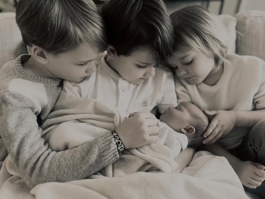 На кадрах все трое сыновей смотрят на сестру Инес. На другом снимке запечатлён Юлиан, который целует сестру в лоб.