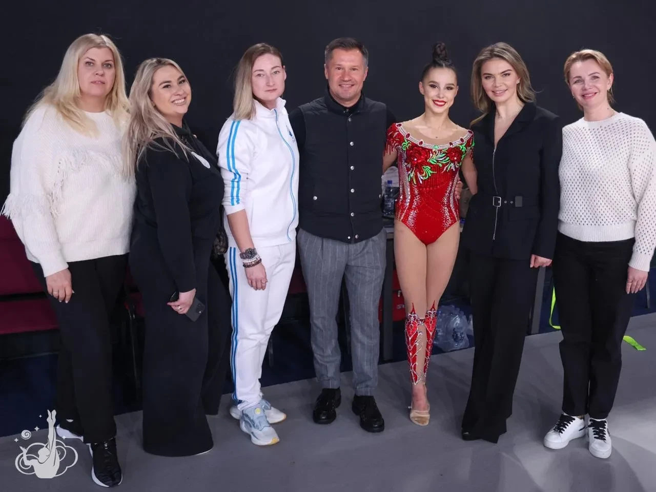 Алина Кабаева с подопечной и тренерами/Фото: "Небесная грация"/Telegram