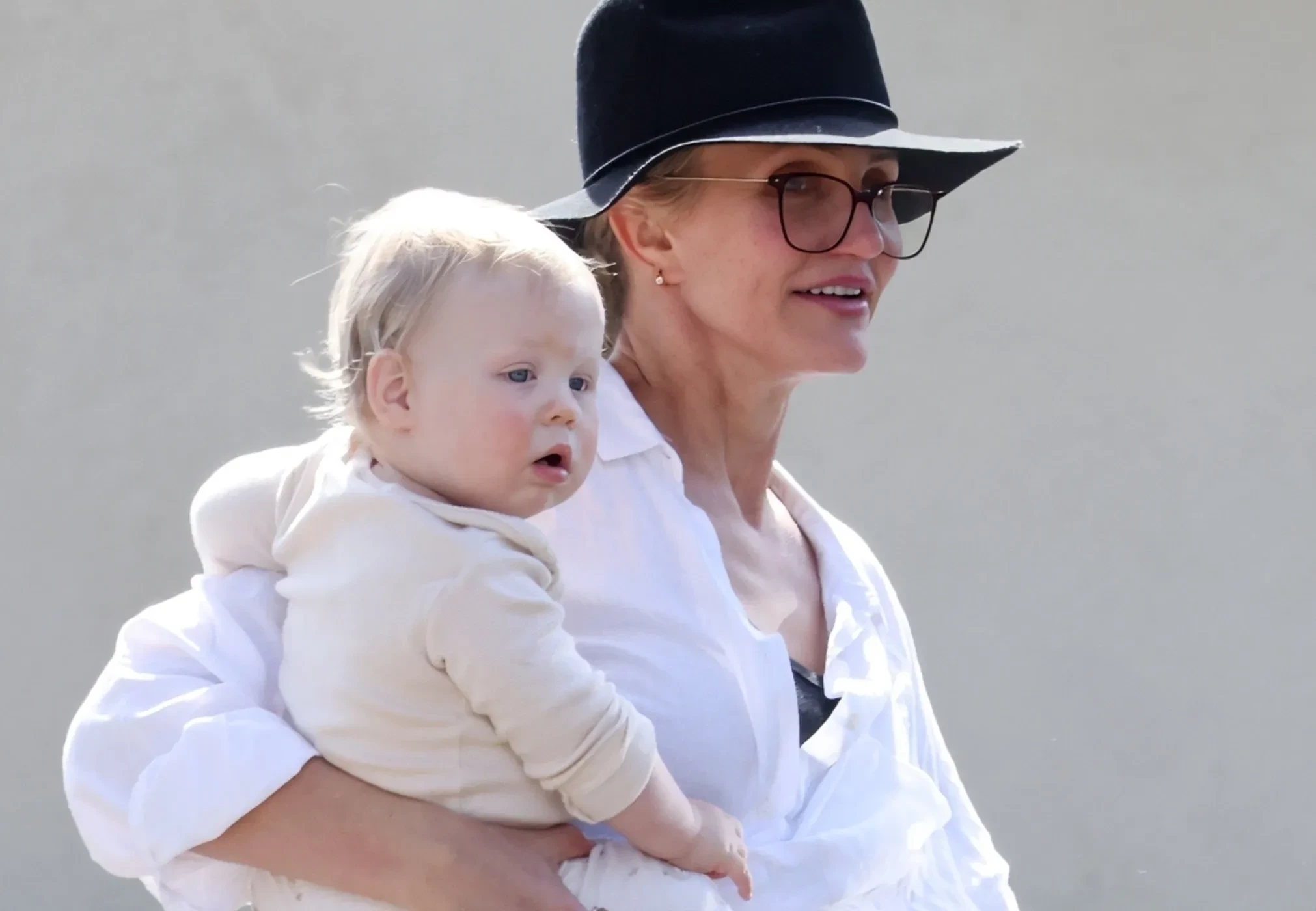 Кэмерон Диас заметили на публике с годовалым сыном Кардиналом от музыканта Бенджи Мэддена. Папарацци застали 52-летнюю актрису с ребёнком на парковке.