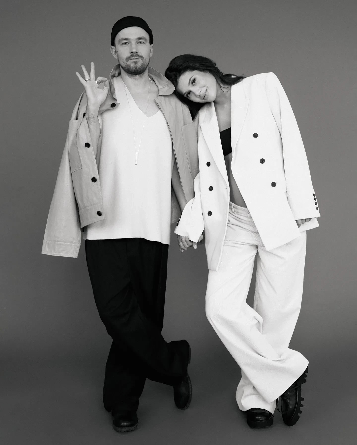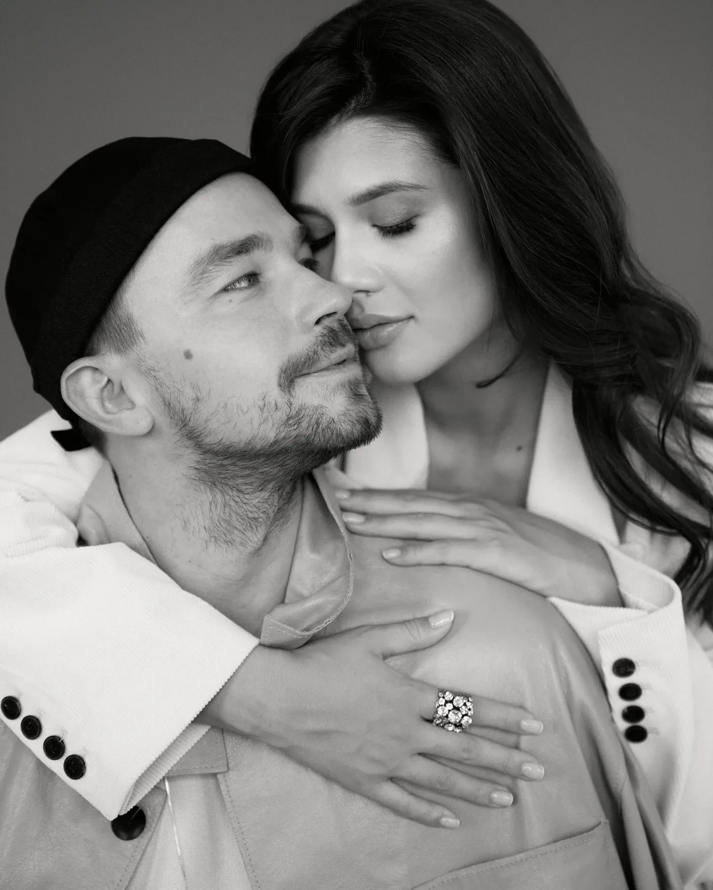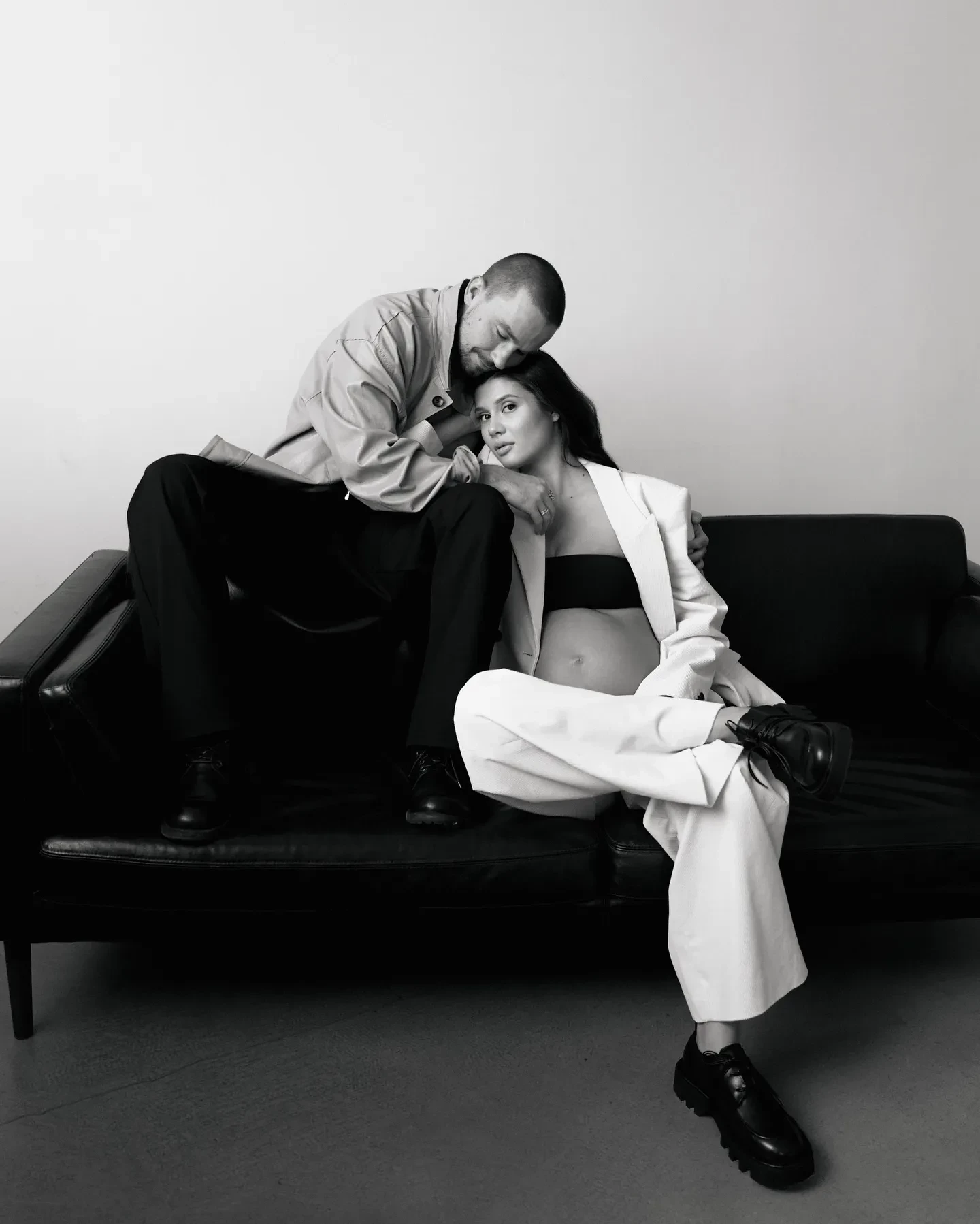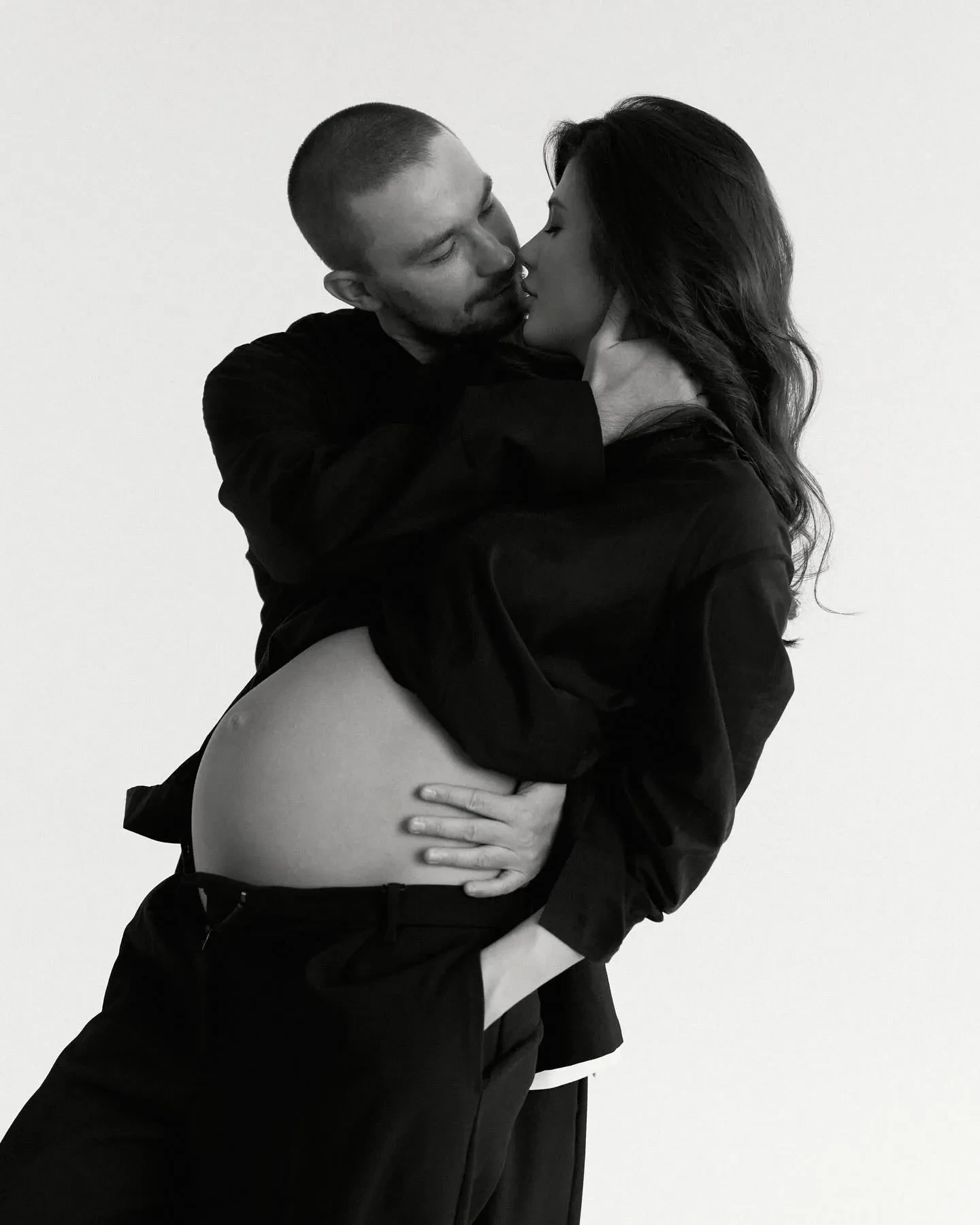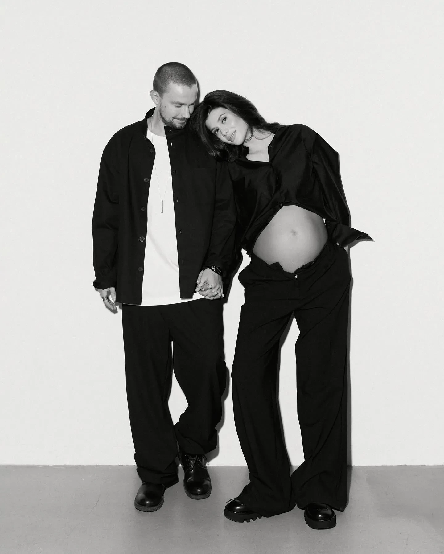 На чёрно-белых снимках пара позирует в обнимку. На некоторых кадрах Александр обнимает жену за живот. Также Петров опубликовал видео с самой фотосессии, где он танцует и улыбается рядом с женой.