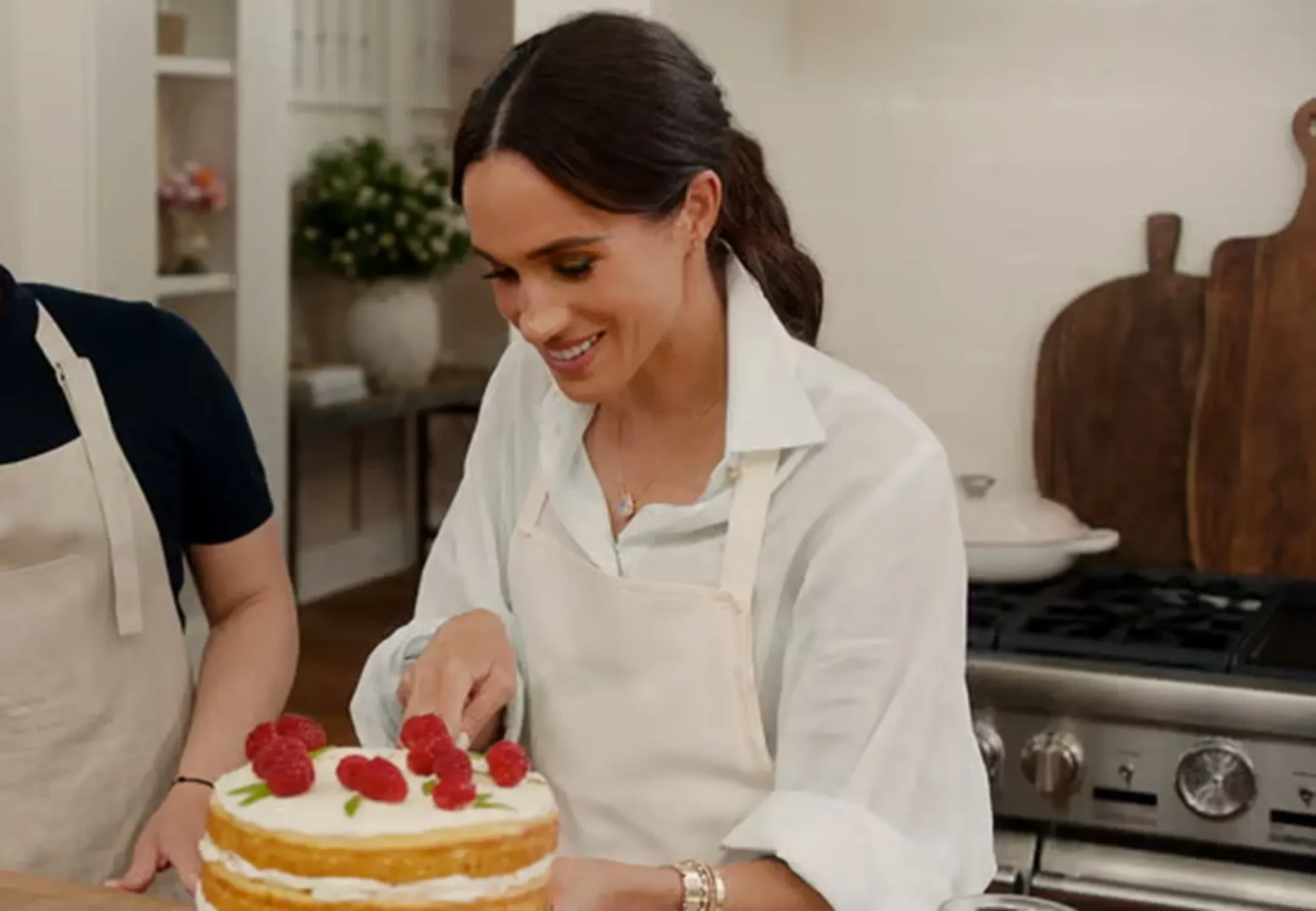 Меган Маркл в шоу "С любовью, Меган"/Фото: кадр из видео/NetflixПользователи соцсетей также поделились своими мнением по поводу нового проекта Маркл. "Почему все, кто может позволить себе дорогую кухню, думают, что мы хотим, чтобы они научили нас готовить?", "Мне кажется, что съёмки в доме, который им не принадлежит, создают ощущение какой-то фальши", "Если вы обратите внимание на все её (Маркл — Прим. ред.) видео, она почти не смотрит в глаза. Она всё время что-то бессвязно говорит, касаясь лица и глядя куда-то", — пишут люди.