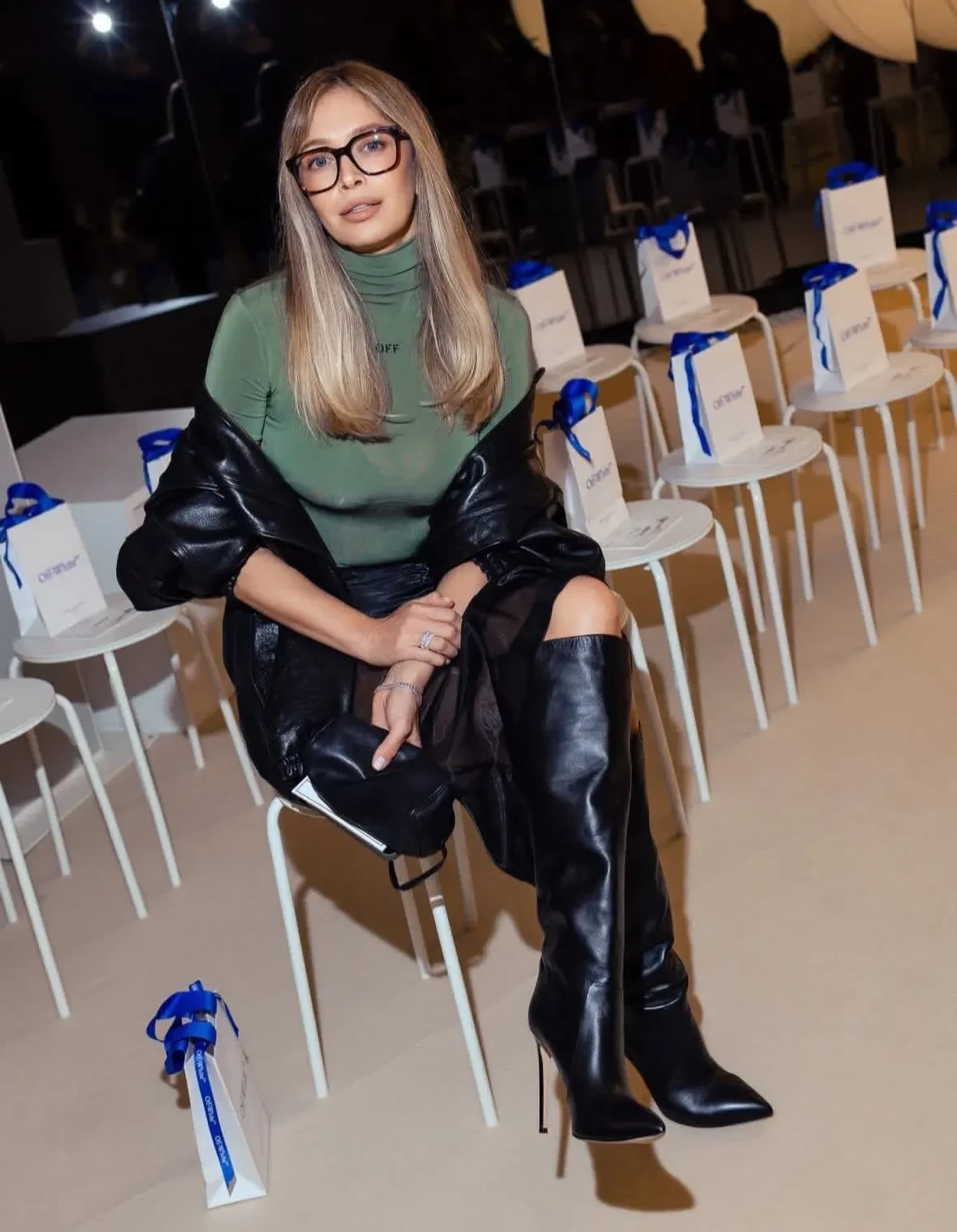 Вера Брежнева посетила показ новой коллекции бренда Off-White в рамках Недели моды в Париже. 42-летняя певица позировала перед шоу в прозрачной юбке, зелёной водолазке и сапогах на каблуках. Свой образ экс-супруга Константина Меладзе дополнила кожаной курткой и очками с прозрачными линзами.