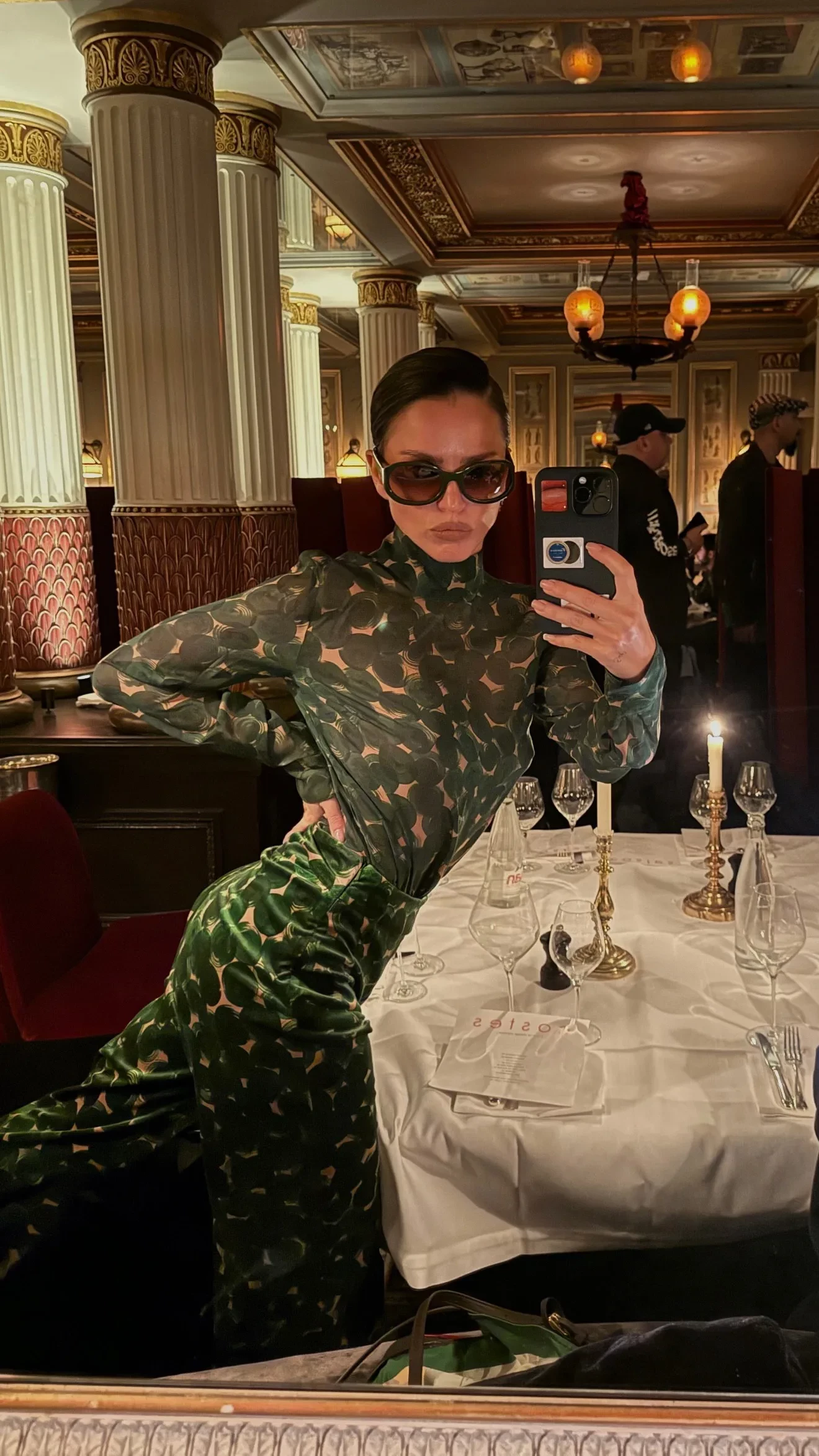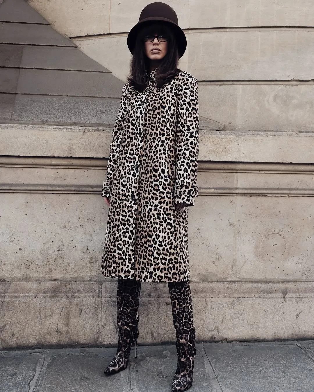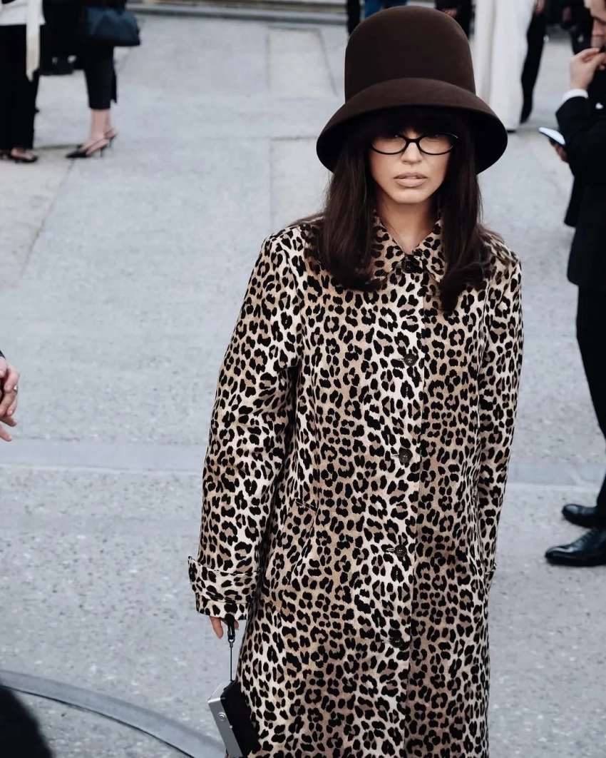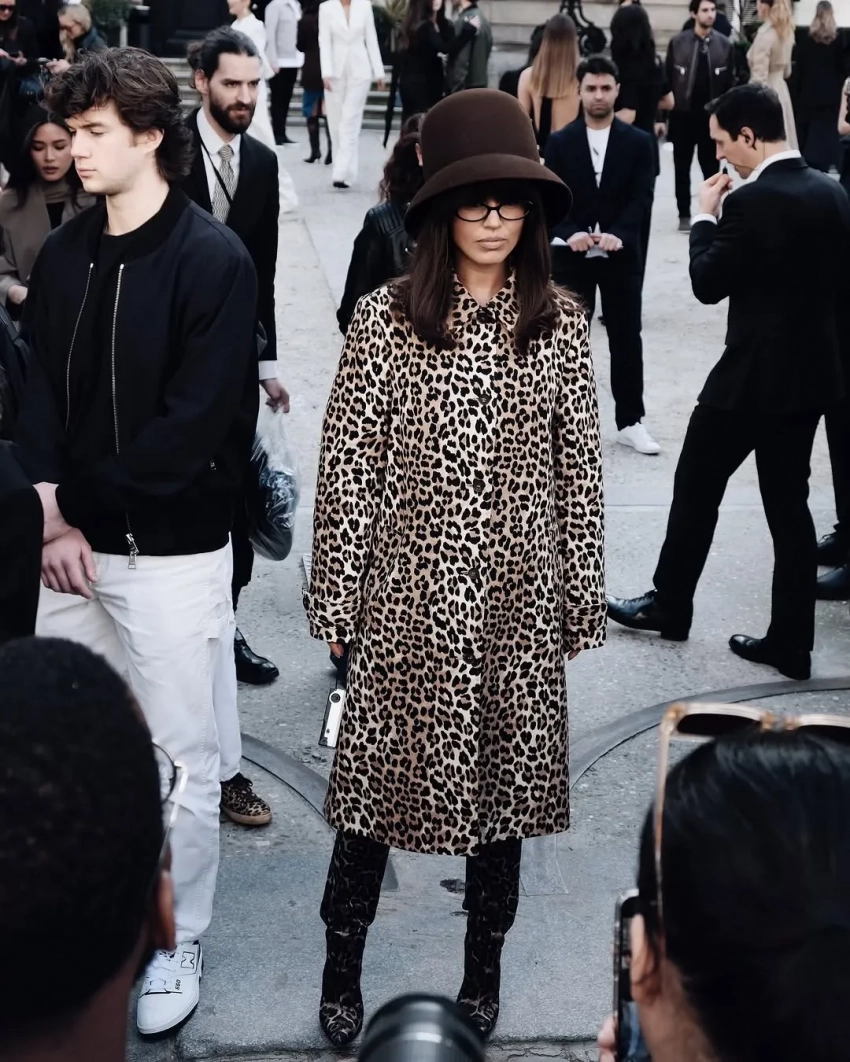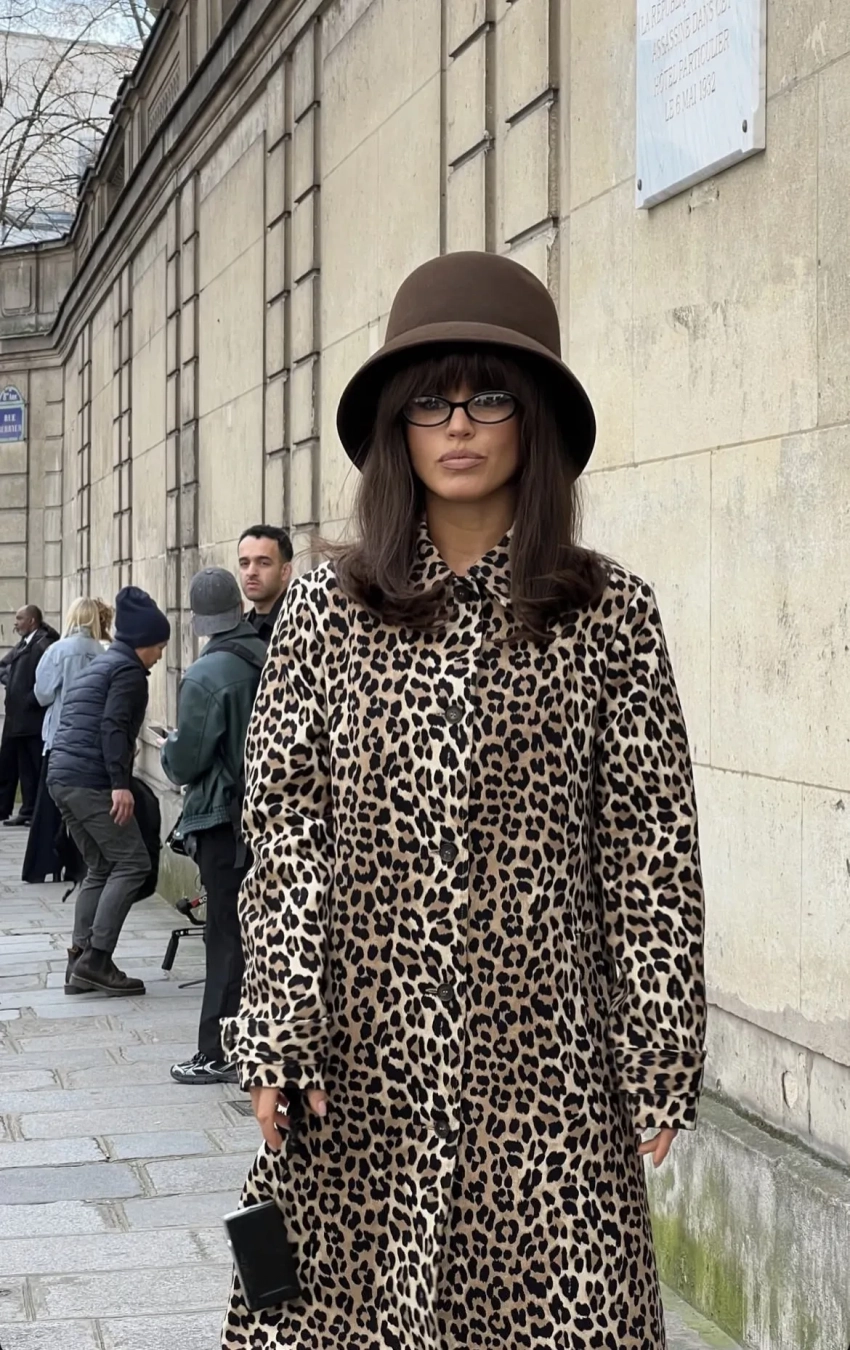 На следующий день 34-летняя певица отправилась на показ Nina Ricci — уже в образе в стиле ретро. Она позировала на стритстайле в леопардовом пальто и сапогах, дополнив образ объёмной шляпой и очками с прозрачными линзами.