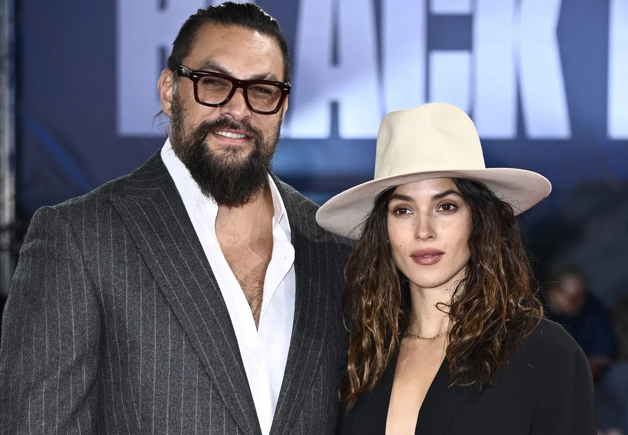 Момоа выбрал для мероприятия серый костюм в полоску, а 32-летняя Адриа надела тёмный костюм, дополнив образ чёрной сумкой и белой шляпой.