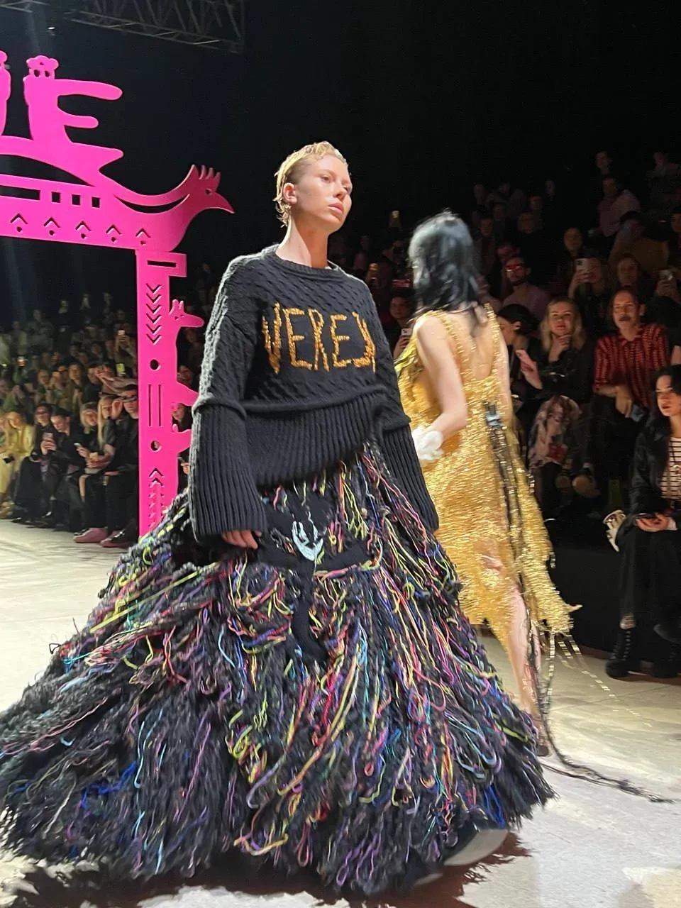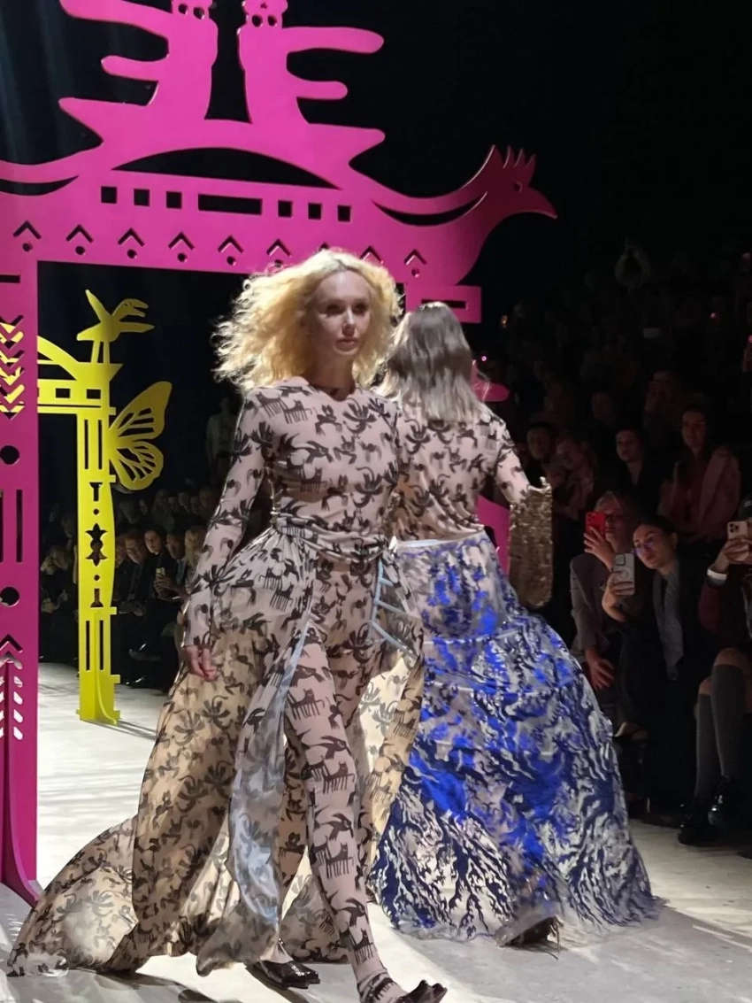 Ольга Карпуть открывала показ бренда, который основал стилист Игорь Андреев. Ксения Собчак вышла на подиум в объёмном зелёном платье, а Мария Миногарова дефилировала в платье "из ниток". В зале модель поддерживал её предполагаемый бойфренд, актёр Александр Горчилин. Когда Мария проходила мимо, он воскликнул: "Красотулечка!".
