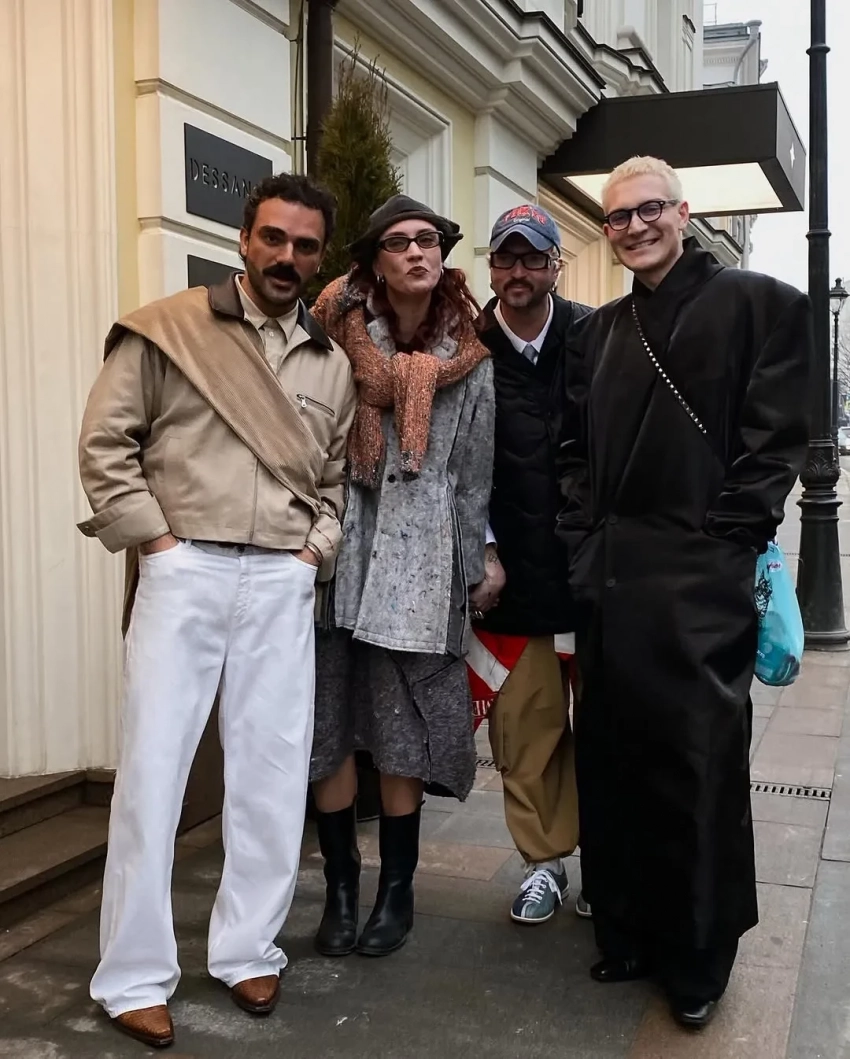 Певец Хвича Кварацхелия, Миша и Китти, стилист Данил Фурс перед показом/Фото: khvichalucca/Instagram*