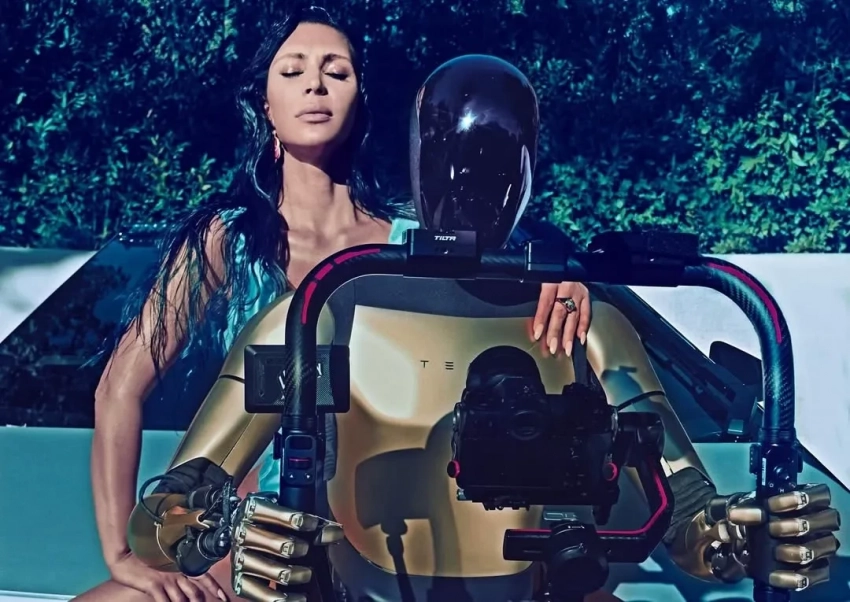 Ким Кардашьян раскритиковали за провокационную съемку для глянца с роботом Tesla