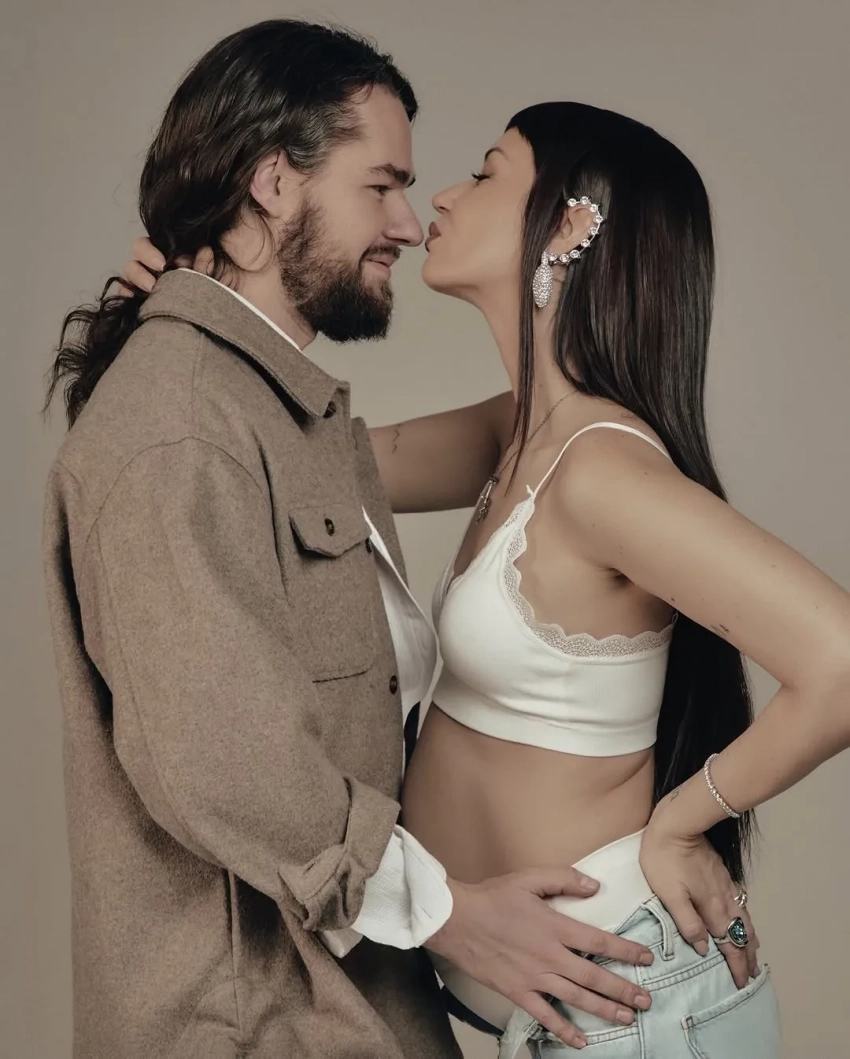 Ида Галич снялась в новой фотосессии в преддверии рождения второго ребёнка. На снимках 34-летняя блогерша позирует в кадре вместе с женихом Олегом Ледвичем.