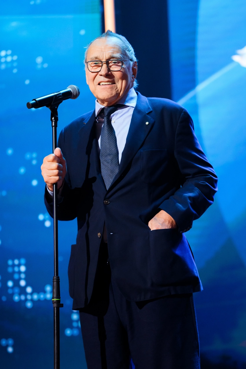 Юлия Высоцкая и Андрей Кончаловский87-летний Андрей Кончаловский не только открыл церемонию, но и получил приз в категории "Лучшая сценарная работа" за фильм "Смотри на меня". В своей речи он отметил, что в своей работе не ищет лёгких путей: "Не надо пользоваться компасом, когда пишешь сценарий. Надо идти огородами".
