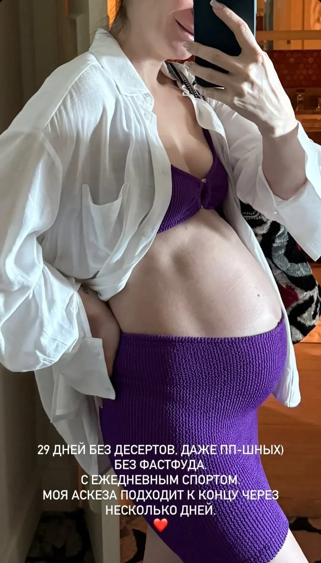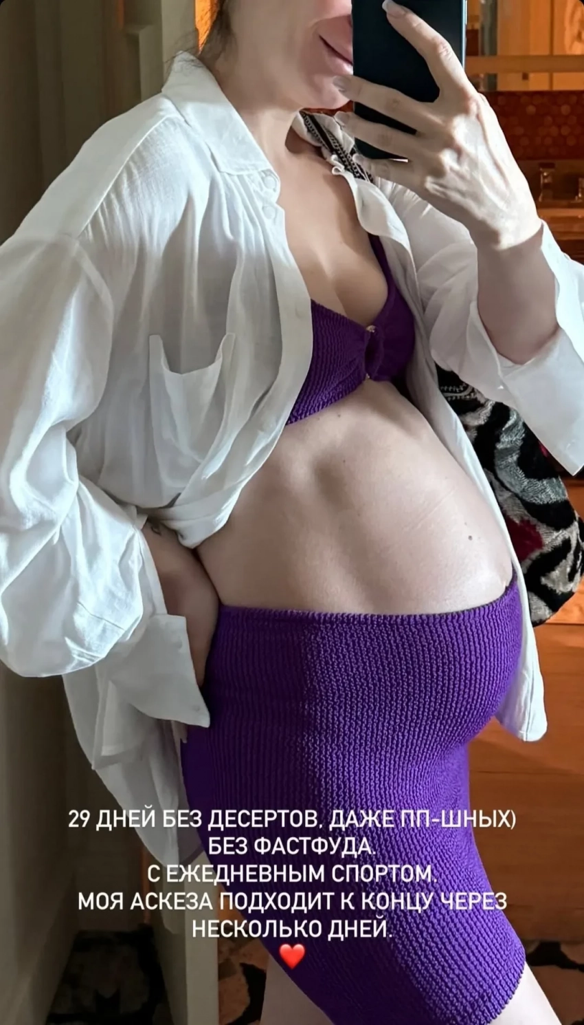 Блогерша рассказала, что во время беременности продолжает правильно питаться и заниматься спортом, а в марте она и вовсе устроила себе аскезу: "29 дней без десертов, даже пп-шных. Без фастфуда. С ежедневным спортом. Моя аскеза подходит к концу через несколько дней (орфография и пунктуация автора сохранены. — Прим. ред.)", — написала Ида.