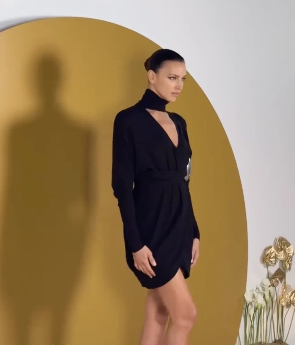 39-летняя Ирина позировала рядом с гостями в чёрном мини-платье и мюлях с мехом. Её образ дополнили сумка-багет и укладка с пучком. За столом Шейк сидела в компании представительницы бренда Яны Пак.