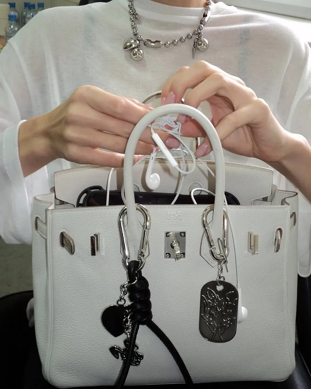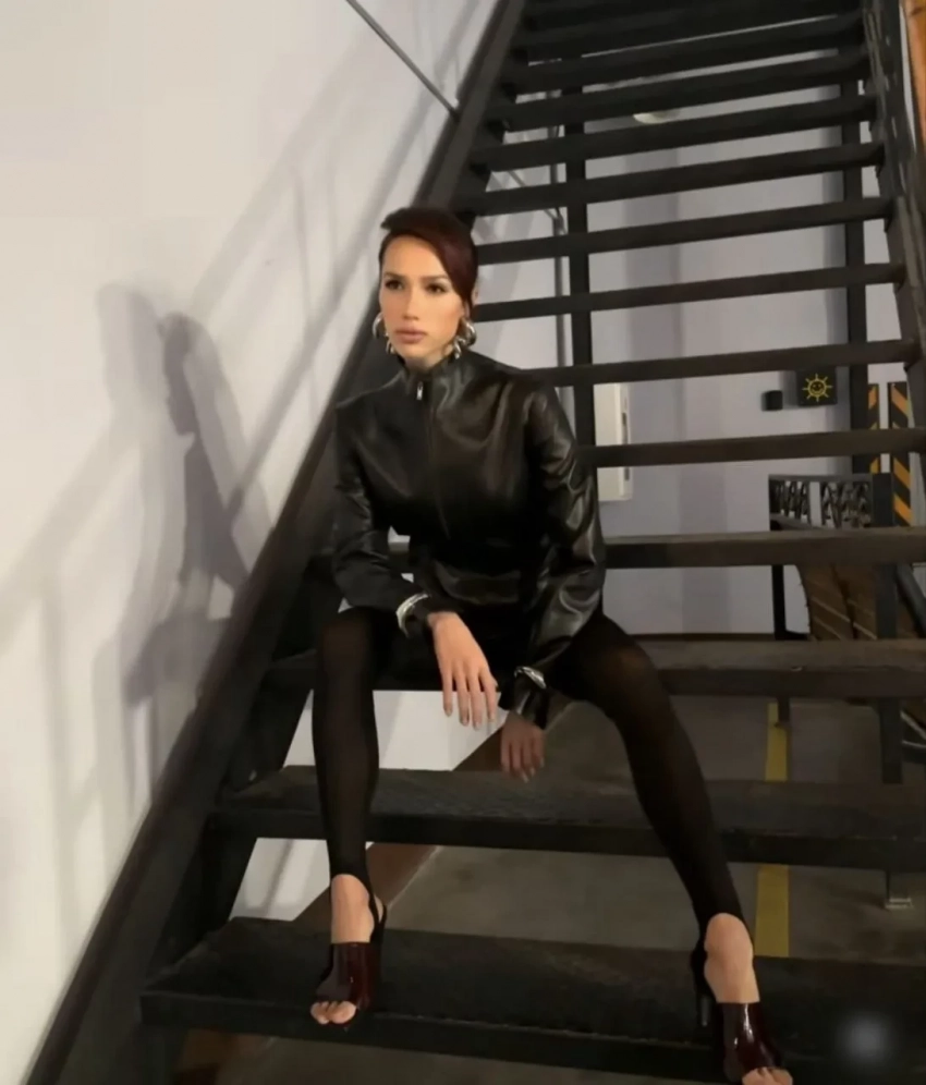 На фото Загитова предстала в кожаной куртке и полупрозрачных леггинсах с убранными в длинный хвост волосами. Она также выложила кадр с бэкстейджа, на котором сидит вместе с сумкой Hermes.