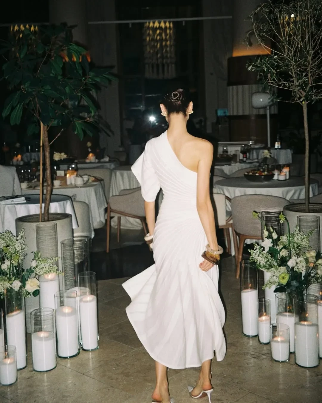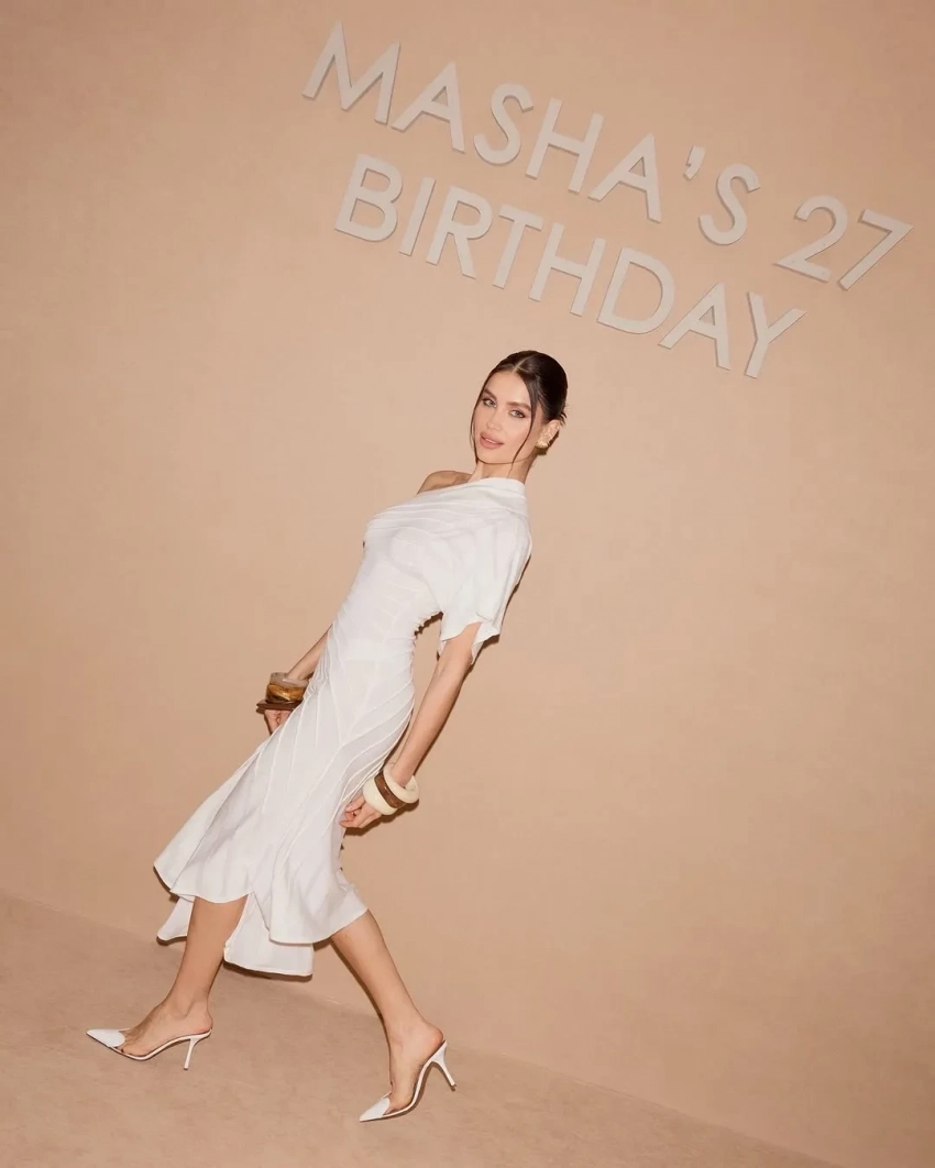 Судя по снимкам, дресс-кодом вечеринки стали чёрный и белый цвета. Мария появилась перед гостями в белом платье Alaia на одно плечо и дополнила образ массивными браслетами. Поздравить Лобанову пришла её мать Евгения и сестра Екатерина, а также основательница Дома красоты Bemônt Варвара Мазараки, визажист Валентина Гросс, модель Анастасия Бова и другие.