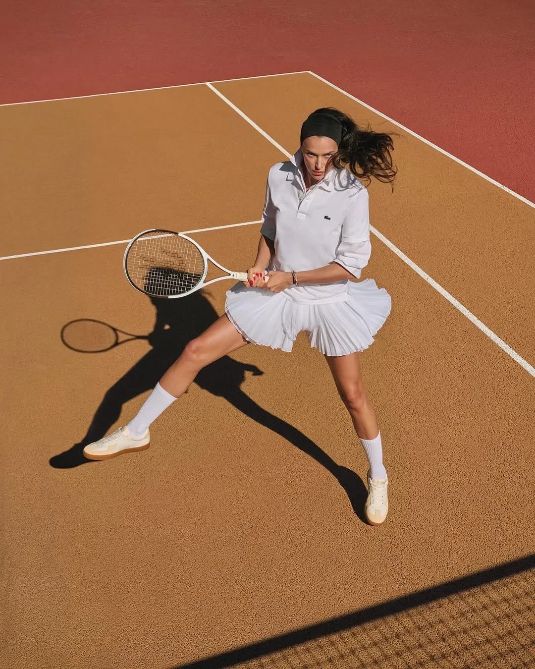 На обложке и кадрах из фотосессии 39-летняя супермодель позирует на теннисном корте в объективе парижского фотографа Валентина Херфрея. Ирина примерила образы в стиле теннискора от Lacoste: поло, юбку в складку, спортивные трусы, купальник и аксессуары бренда. За стиль Шейк отвечала Шарлотт Рубинштейн, а Даша Жукова, вероятно, тоже приняла участие в создании съёмки, так как отмечена на опубликованных в инстаграме* снимках из фотосессии.