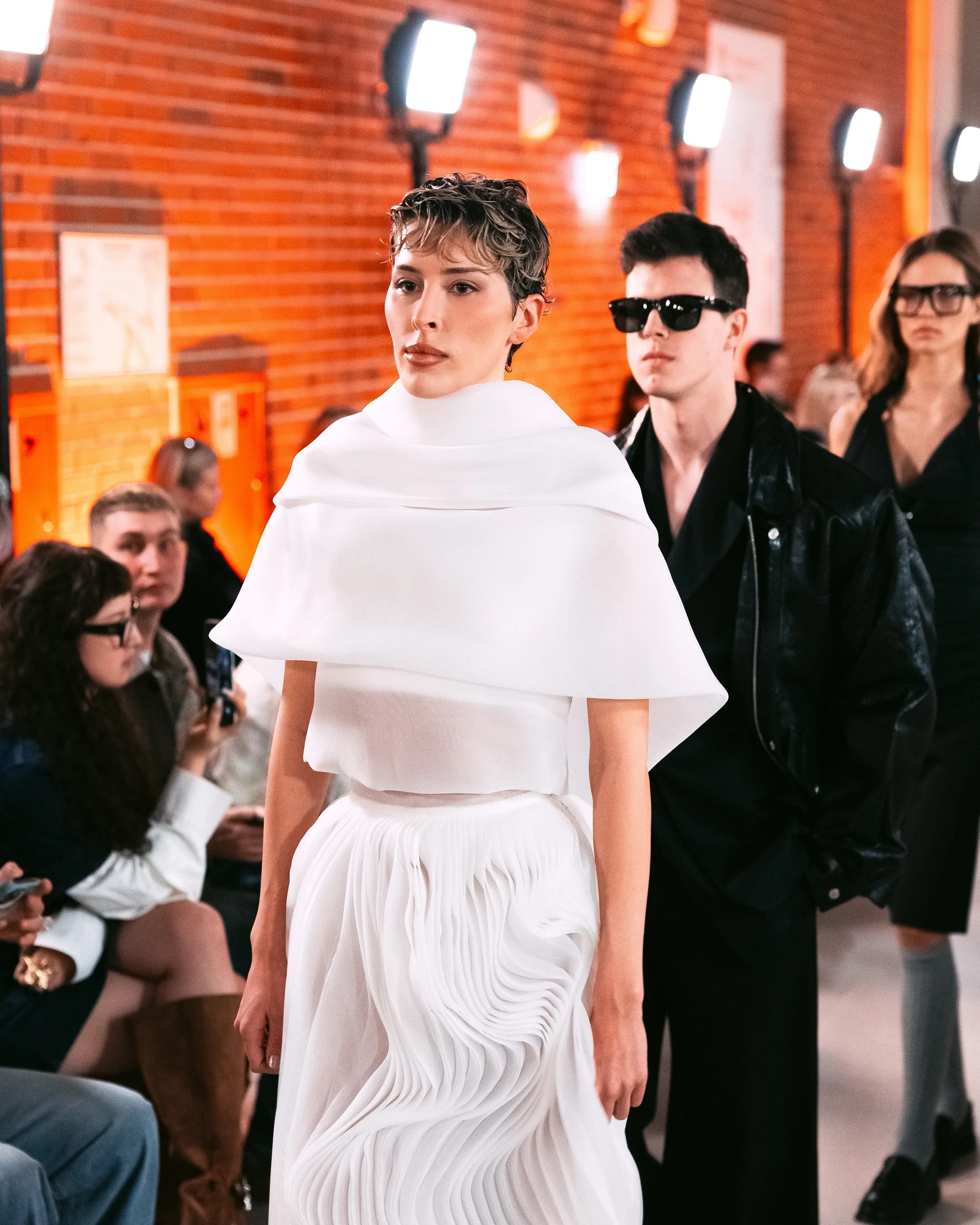 Николай ОвечкинОткрыла показ 26-летняя Алеся Кафельникова в красном платье You Wanna, а закрыл 42-летний Данила Поляков, который недавно вернулся в модную индустрию после длительного перерыва и стал новым лицом бренда Гоши Рубчинского. Также по подиуму прошлись: соосновательница агентства Setters Саша Жаркова, основательница агентства Lumpen Авдотья Александрова и её возлюбленный Александр Гриднев, Диана Коркунова, сын Игоря Веника Григорий, инфлюенсер Эля Абрамова и другие модели.