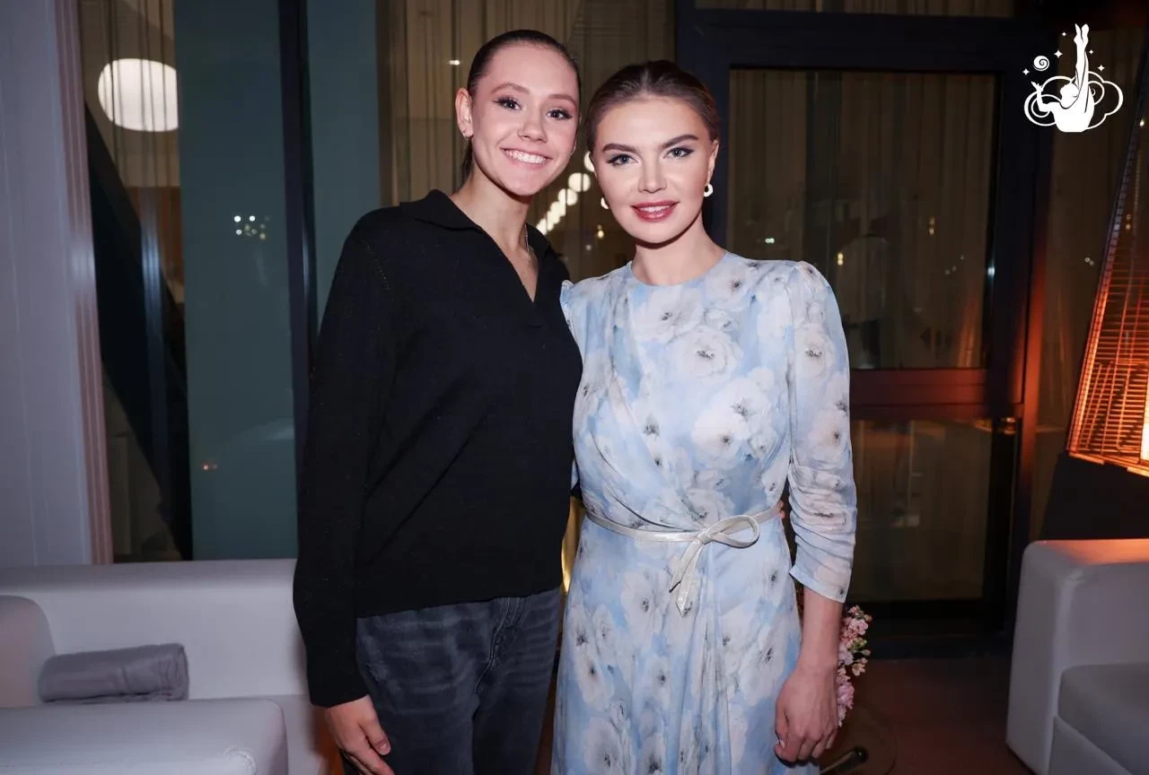 В один из дней 41-летняя Кабаева появилась на публике в ярко-красном брючном костюме. В другой раз она выбрала платье нежно-голубое платье с цветочным принтом. На одном из снимков экс-спортсменка позирует с сёстрами-фигуристками Диной и Ариной Авериными.