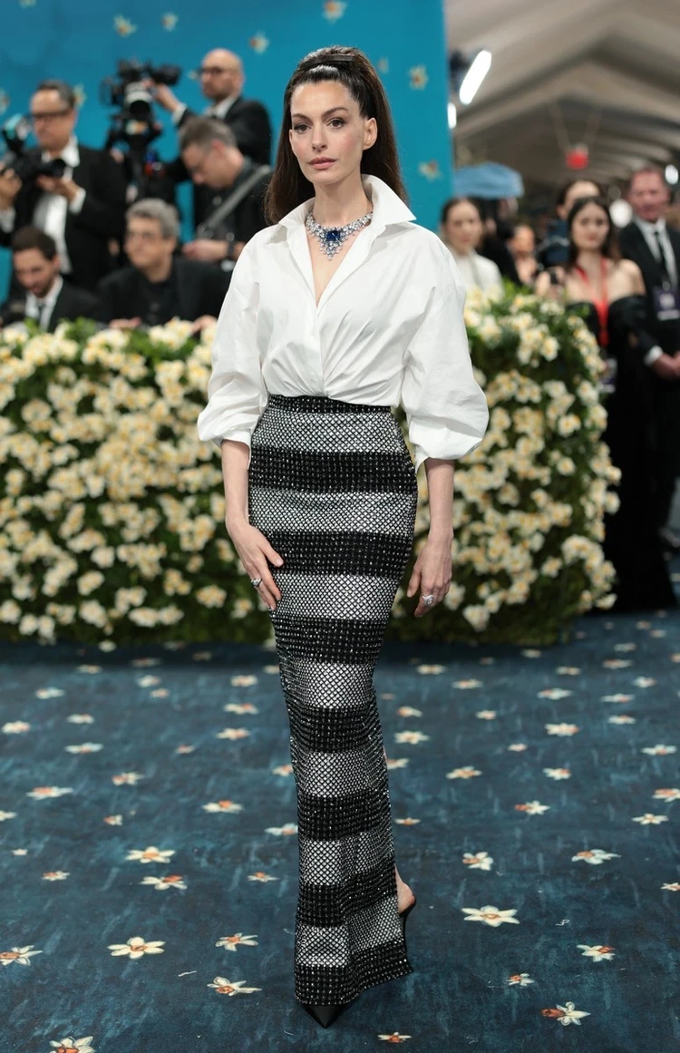 На звание самых скучных образов смело могут претендовать Энн Хэтэуэй и Хейли Бибер. Энн пришла в белой рубашке и юбке в пол. А Хейли — в платье-пиджаке, хоть и со шлейфом, но ничего особенного.