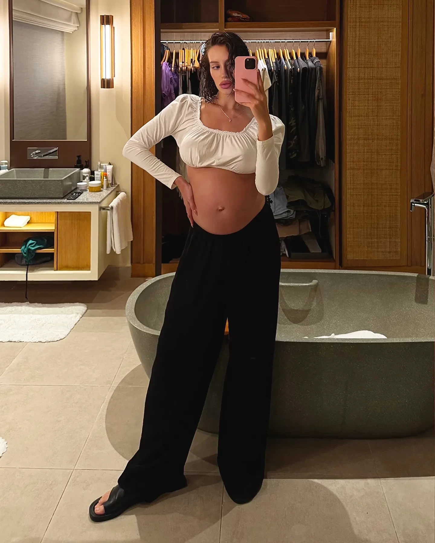31-летняя Валентина Иванова, которая недавно подтвердила, что ждёт ребенка от 41-летнего рэпера Тимати, опубликовала в инстаграме* новые снимки с заметно округлившимся животом.