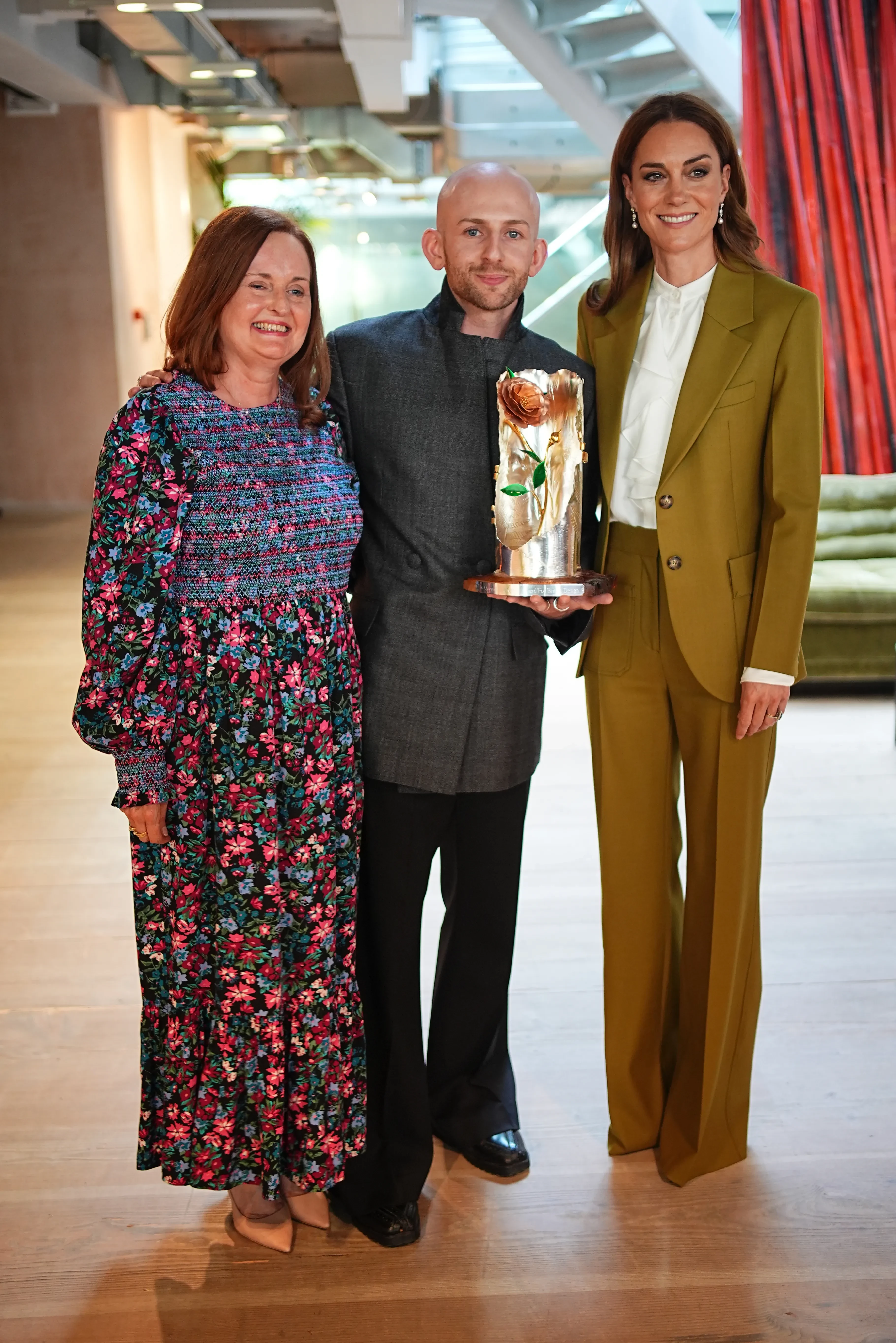 Кейт Миддлтон и Патрик МакдауэллКейт МиддлтонПремия, учреждённая в 2018 году Елизаветой II, вручается ежегодно за вклад в развитие британской моды. В этом году трофей в виде королевской розы Кейт самолично вручила дизайнеру Патрику Макдауэллу, в портфолио которого — сотрудничество с такими брендами, как Louis Vuitton, Burberry, Gucci и Prada. В ходе мероприятия принцесса также пообщалась с представителями британской фэшн-индустрии, отметив важность поддержки локальных брендов и молодых дизайнеров.