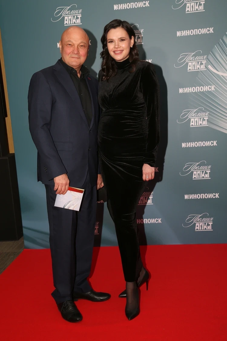 Еще одна счастливая супружеская пара пока только ждет прибавления в семействе. 64-летний режиссер Сергей Гинзбург привел на церемонию 32-летнюю жену – актрису Ольгу Виниченко. Недавно пара объявила о том, что ждет общего ребенка. На красной дорожке Ольга позировала в черном облегающем платье, подчеркнувшем ее животик. Говорят, роды будут уже совсем скоро: в конце июня — начале июля.