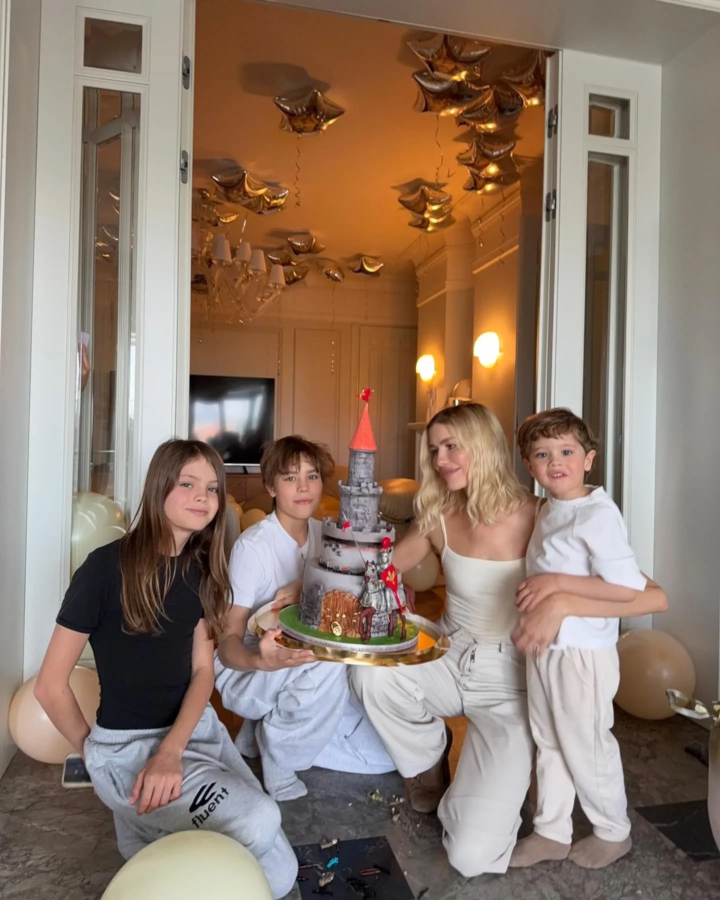 На новых снимках Елена Перминова позирует вместе с именинником и остальными детьми. Она добавила также несколько снимков сына с аниматором в костюме Бубы, а также с тортом в виде рыцарского замка. На фотографиях также появился бывший возлюбленный Перминовой, 65-летний Александр Лебедев. "Твой четвёртый день рождения в кругу самых близких. Пусть так будет всегда, наш любимый Сашулькин. Ты наш генератор радости. Счастливы, что ты у нас есть. С твоим днём рождения, наш кудряшкин!" — подписала 38-летняя Перминова фотографии.