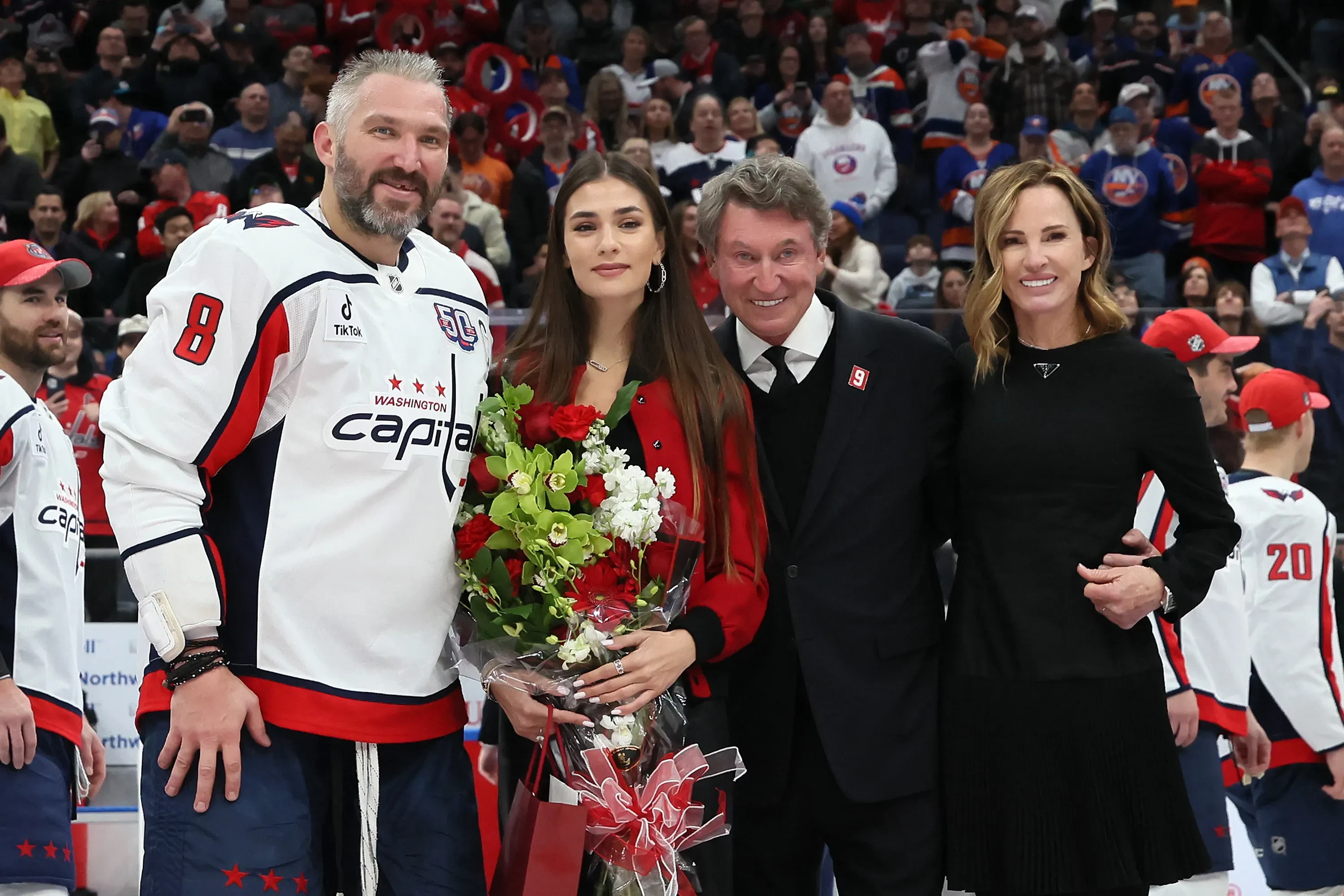 Александр Овечкин с женой и бывший игрок НХЛ Уэйн Гретцки с женой Джанет ДжонсВидео с его подарком опубликовала в своих соцсетях жена Овечкина, Анастасия Шубская. Сама она ранее получила в подарок кольцо Cartier — это дань традиции, которая существует в хоккее с 1994 года. Украшение преподнесла Шубской жена Уэйна Гретцки, чей рекорд побил Овечкин.