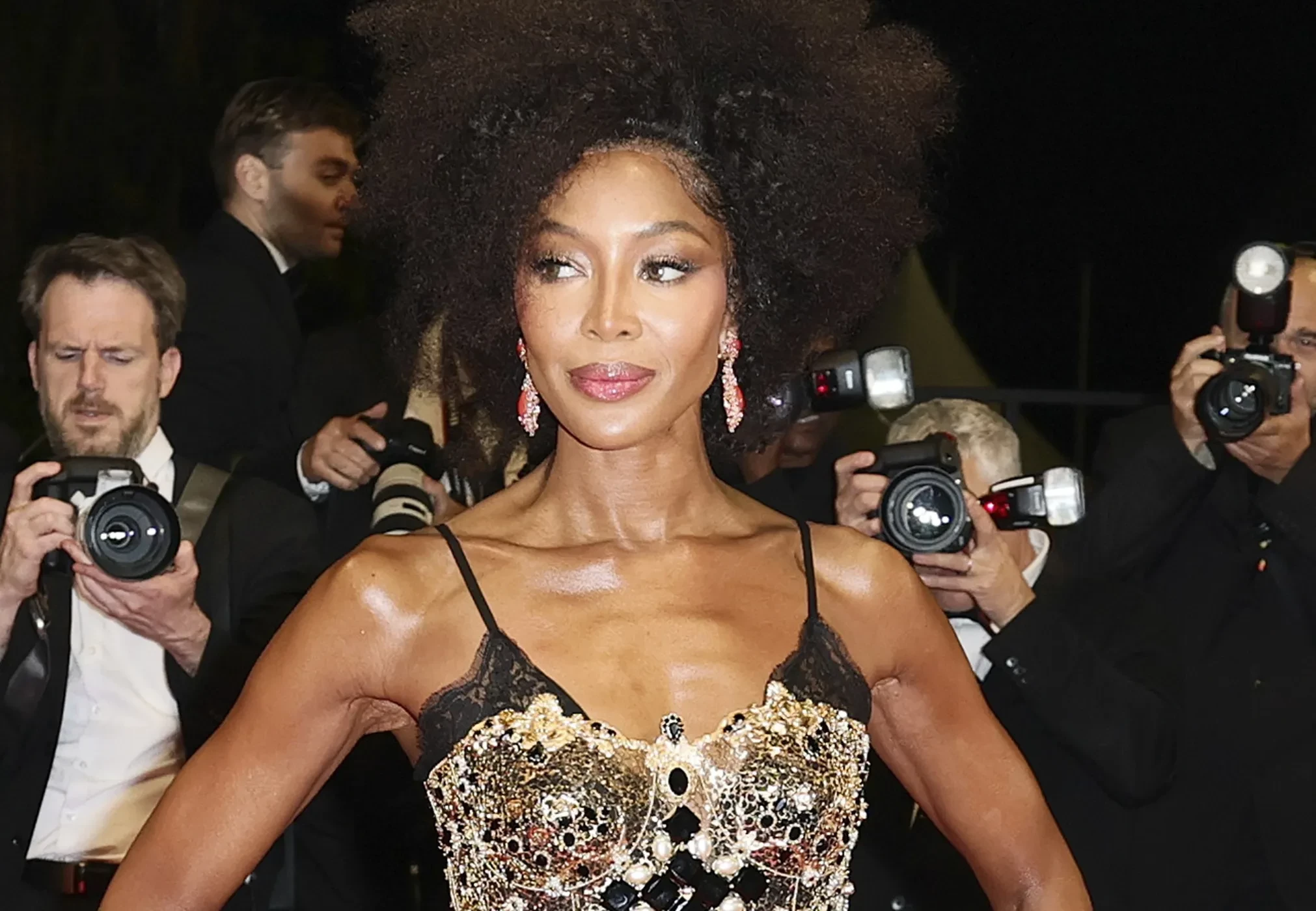 Наоми Кэмпбелл, которая ранее впервые за долгое время пропустила из-за скандала Бал Института костюма Met Gala, стала гостьей красной дорожки 78-го Каннского кинофестиваля. 54-летняя супермодель посетила премьеру фильма "Фуори" режиссёра Марио Мартоне.