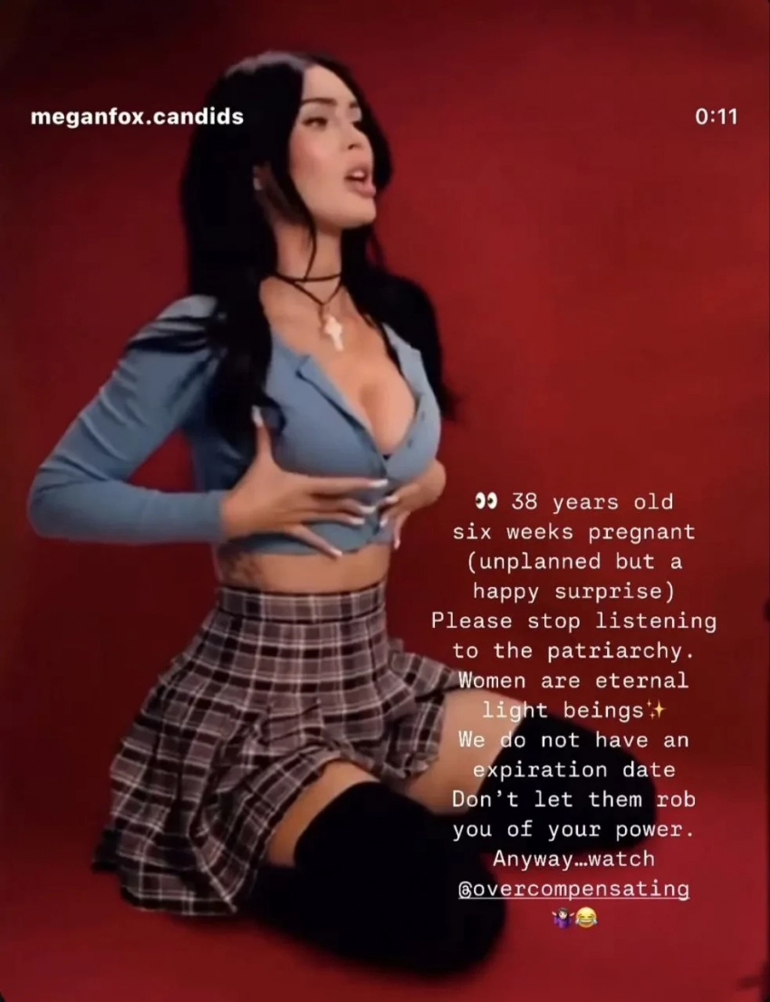 Меган Фокс"Здесь мне 38 лет, и я на шестой неделе беременности (незапланированный, но приятный сюрприз). Пожалуйста, перестаньте верить патриархату. Женщины — существа вечного света. У нас нет срока годности. Не позволяйте им отнимать у вас вашу силу", — написала она, вероятно, имея в виду мужчин.