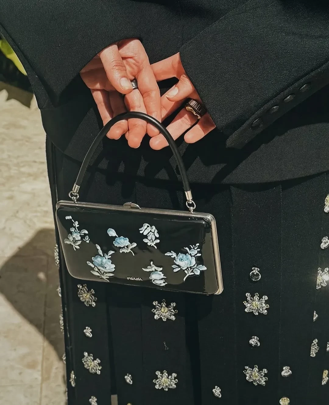 В этот раз на красную дорожку журналистка вышла в костюме LIVY и юбке Prada. Ее образ дополняли серьги Valentino, туфли Ferragamo и сумка Prada.