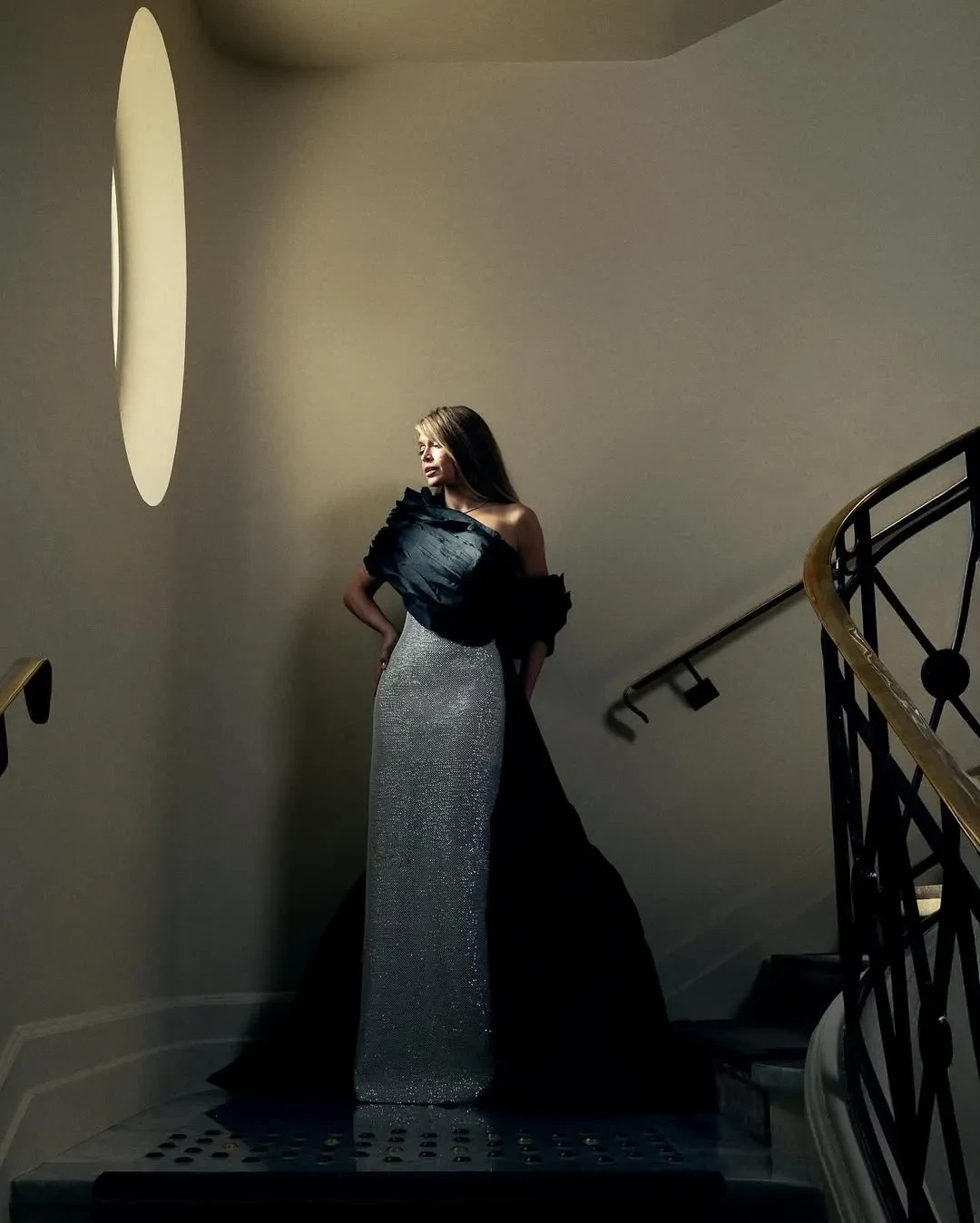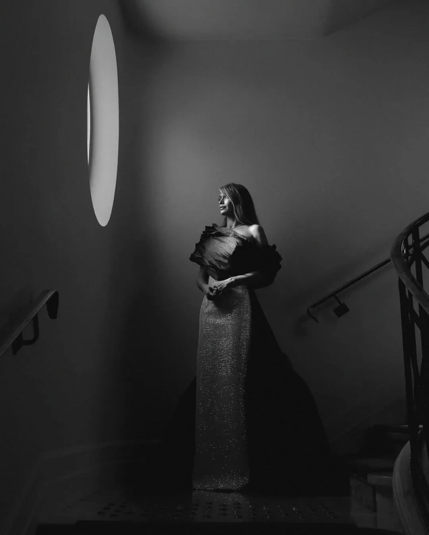 Брежнева опубликовала снимки, на которых предстала в платье с чёрным верхом и искрящейся светлой юбкой по фигуре в пол, образ дополнял чёрный шлейф. "Сияющая", — подписала Вера фото в своём инстаграме*, на одном из которых идёт с улыбкой по коридору отеля.
