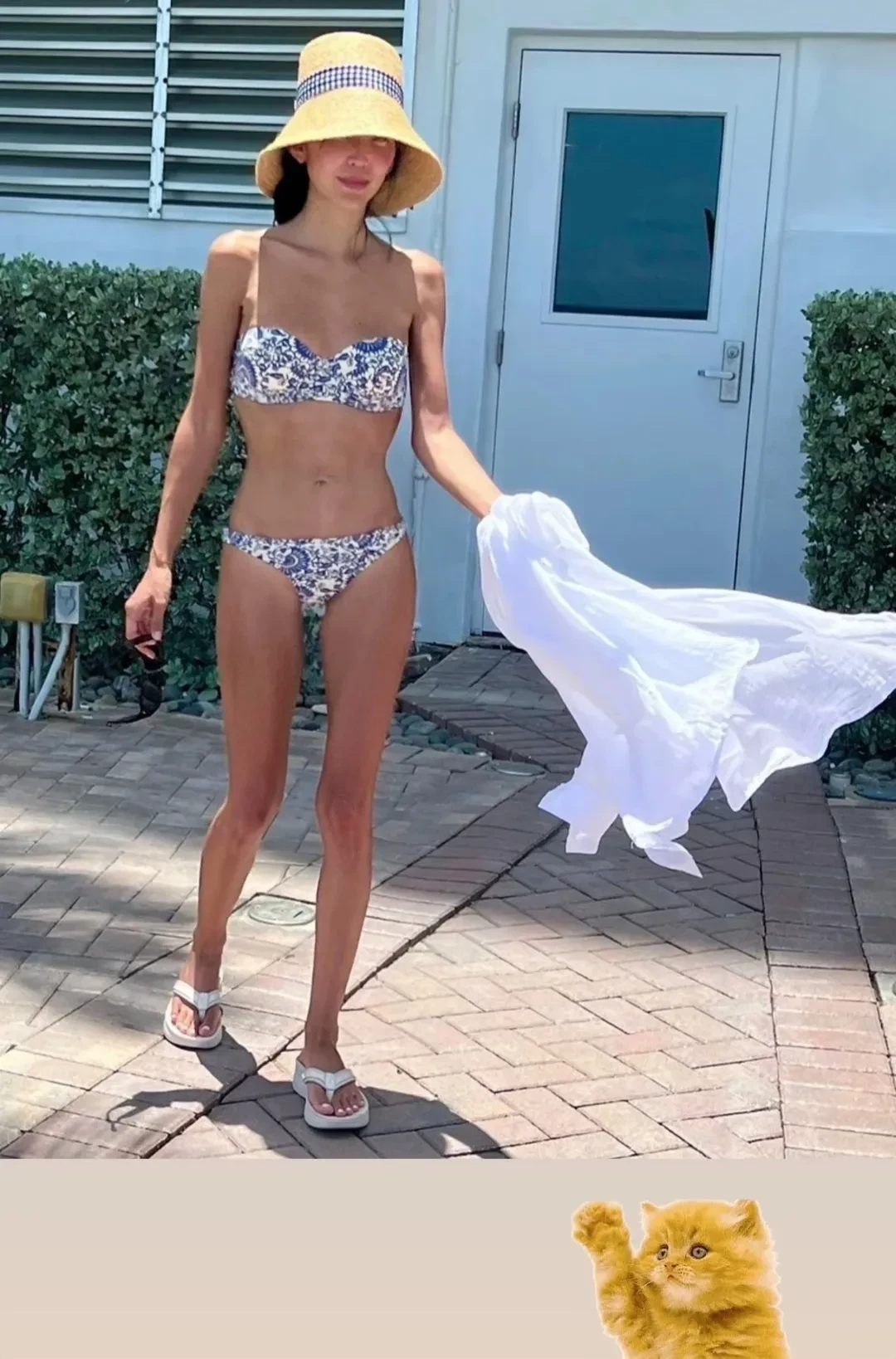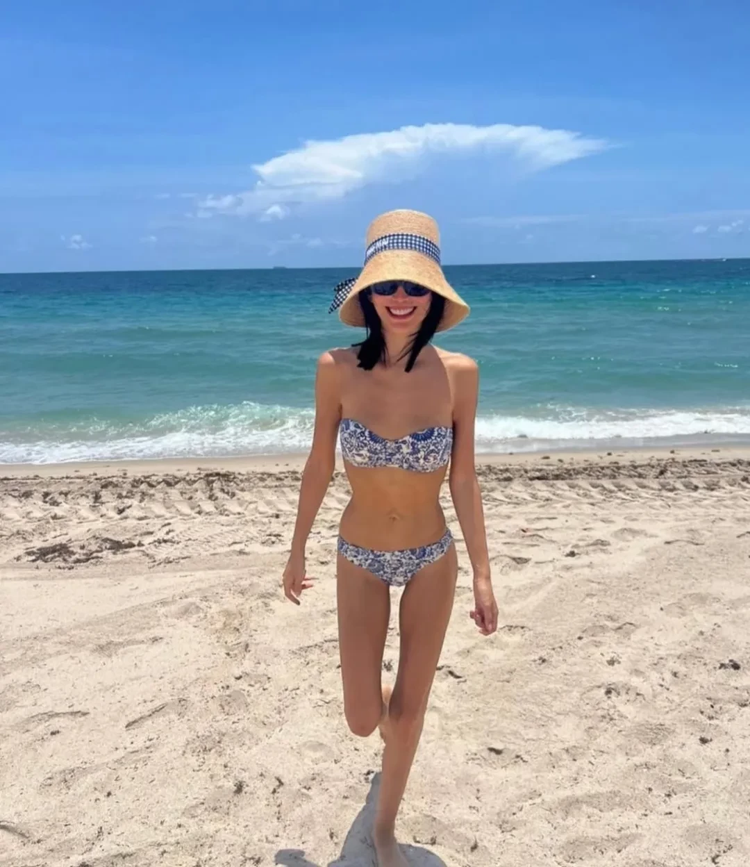 В своих соцсетях девушка опубликовала серию фотографий, снятых на пляже, на которых она предстала в раздельном купальнике, соломенной шляпе и солнцезащитных очках.