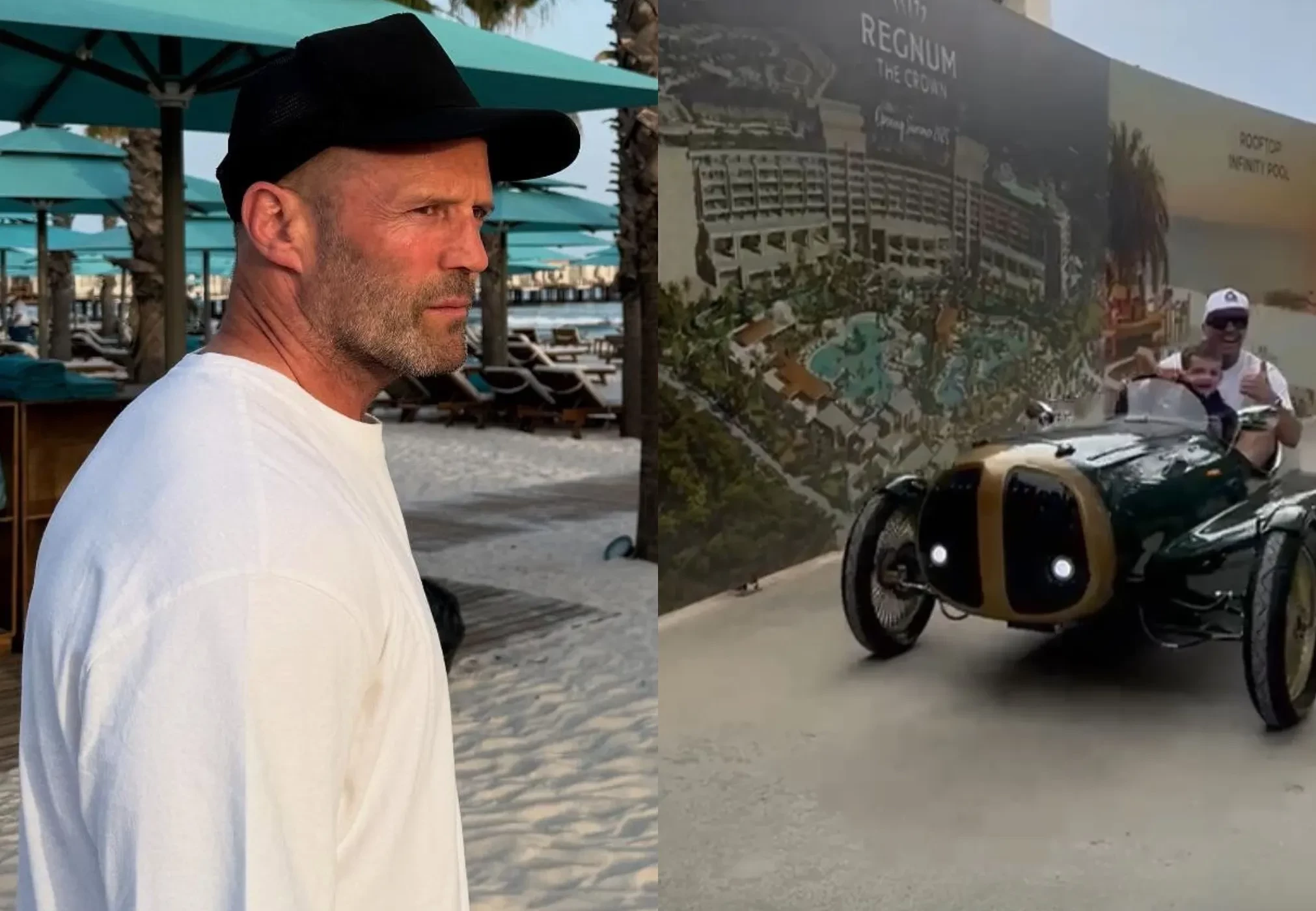 На новых снимках Джейсон вместе с сыном катается на машине. Также актёр добавил несколько своих селфи и фотографию дочери Изабеллы с пляжа. "Рад вернуться сюда. Дом вдали от дома. Нам очень понравилось", — подписал 57-летний Стэтхем фотографии. На снимках не присутствовала его возлюбленная Рози Хантингтон-Уайтли. Однако благодаря некоторым фотографиям и видео, которые публиковали фанаты, известно, что она отдыхает вместе с ним.