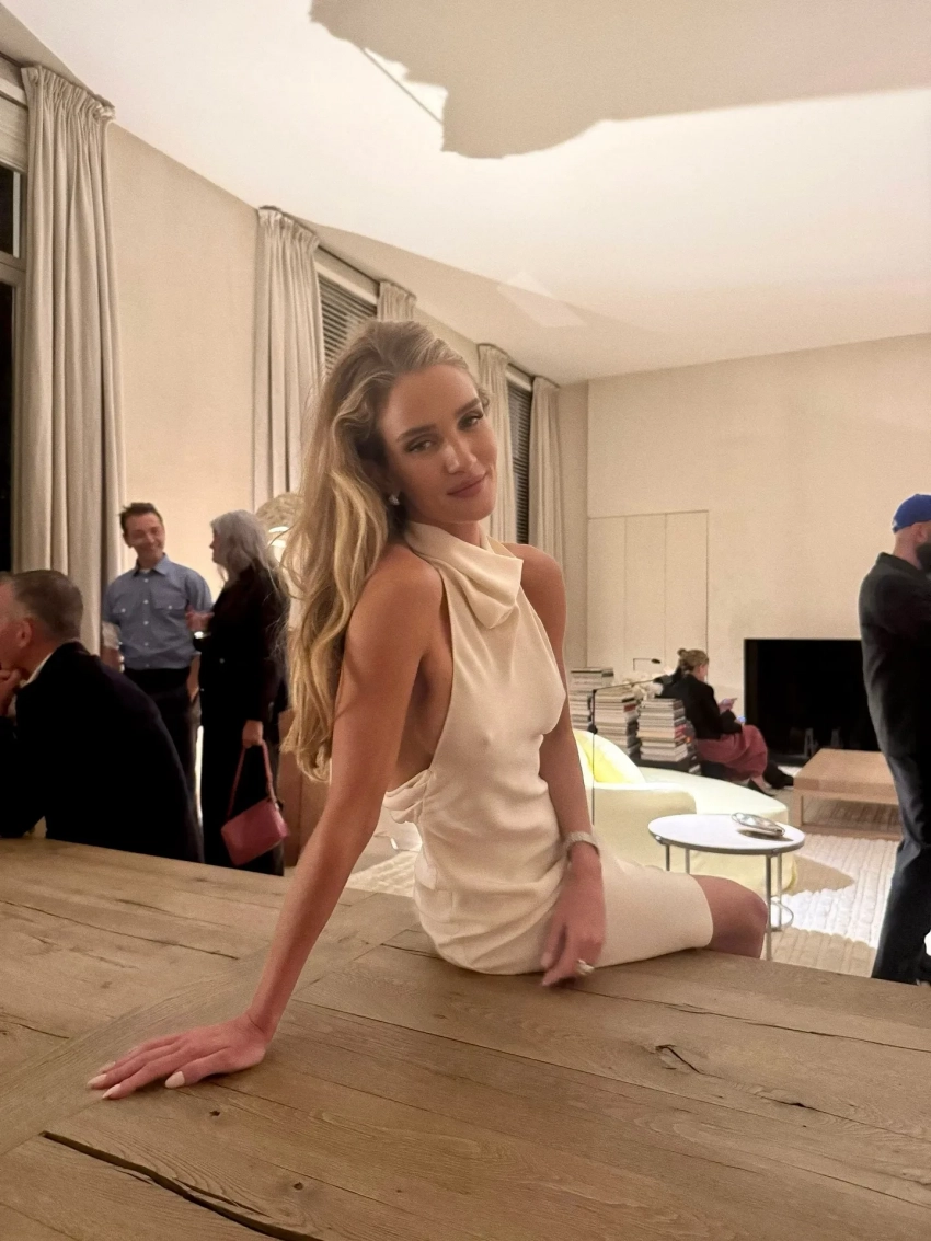 Для мероприятия Рози выбрала кремовое мини-платье с открытыми плечами и воротником-хомутом, которое дополнила туфлями-лодочками в тон. Волосы 38-летняя модель уложила в небрежные волны, а в макияже сделала акцент на естественную красоту. Джейсон, в свою очередь, отдал предпочтение классическому чёрному костюму с белой рубашкой.