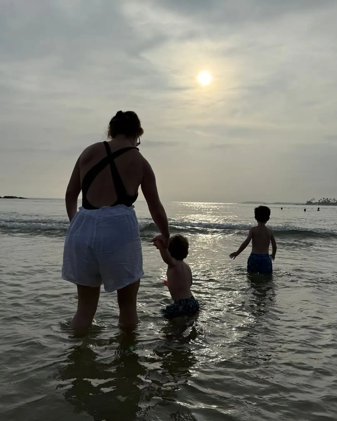 "Океан — величайшее чудо света", — подписала принцесса фото, на одном из которых она позирует в белых шортах и слитном купальнике вместе с детьми.