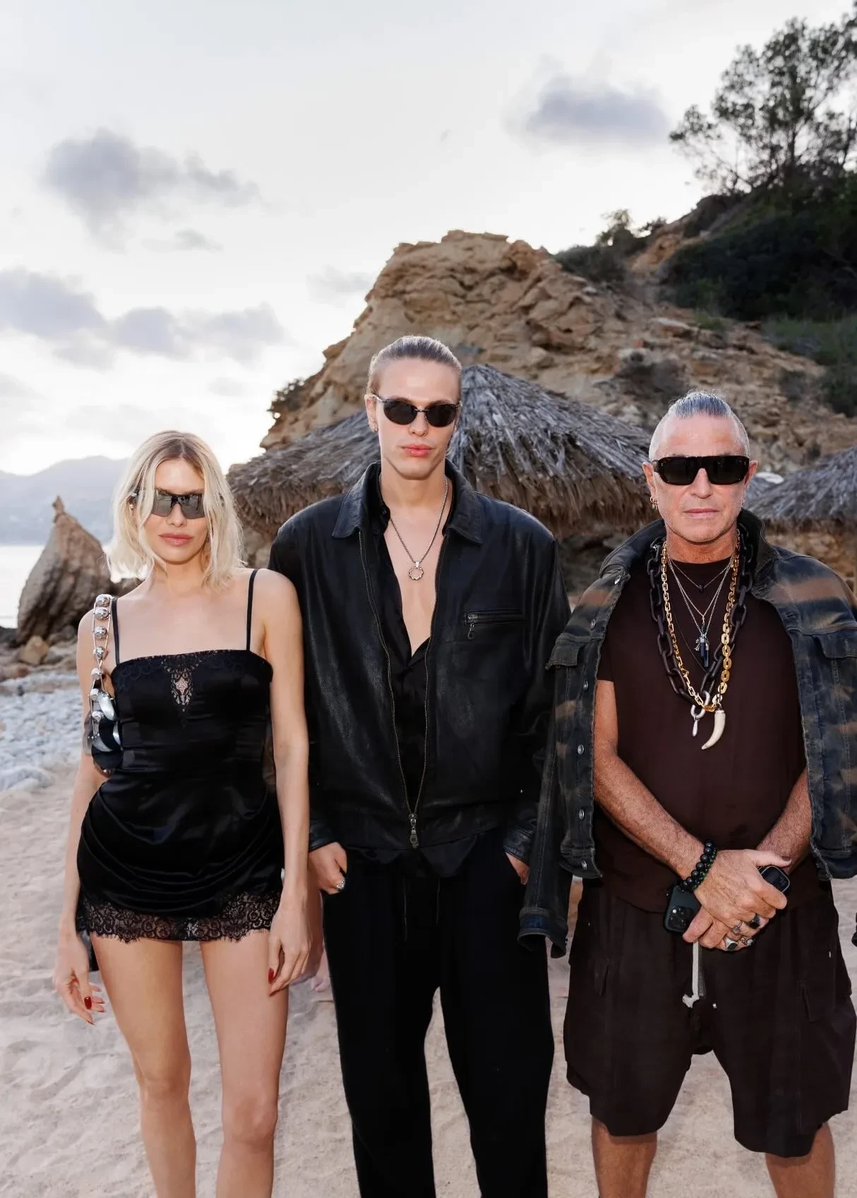 38-летняя экс-возлюбленная миллиардера Александра Лебедева надела на мероприятие чёрное платье мини с кружевом, грубые ботинки и мотокуртку, дополнив образ солнцезащитными очками и серебристой сумкой. 29-летний Тарас позировал рядом с Еленой в образе total black с кожаной курткой.