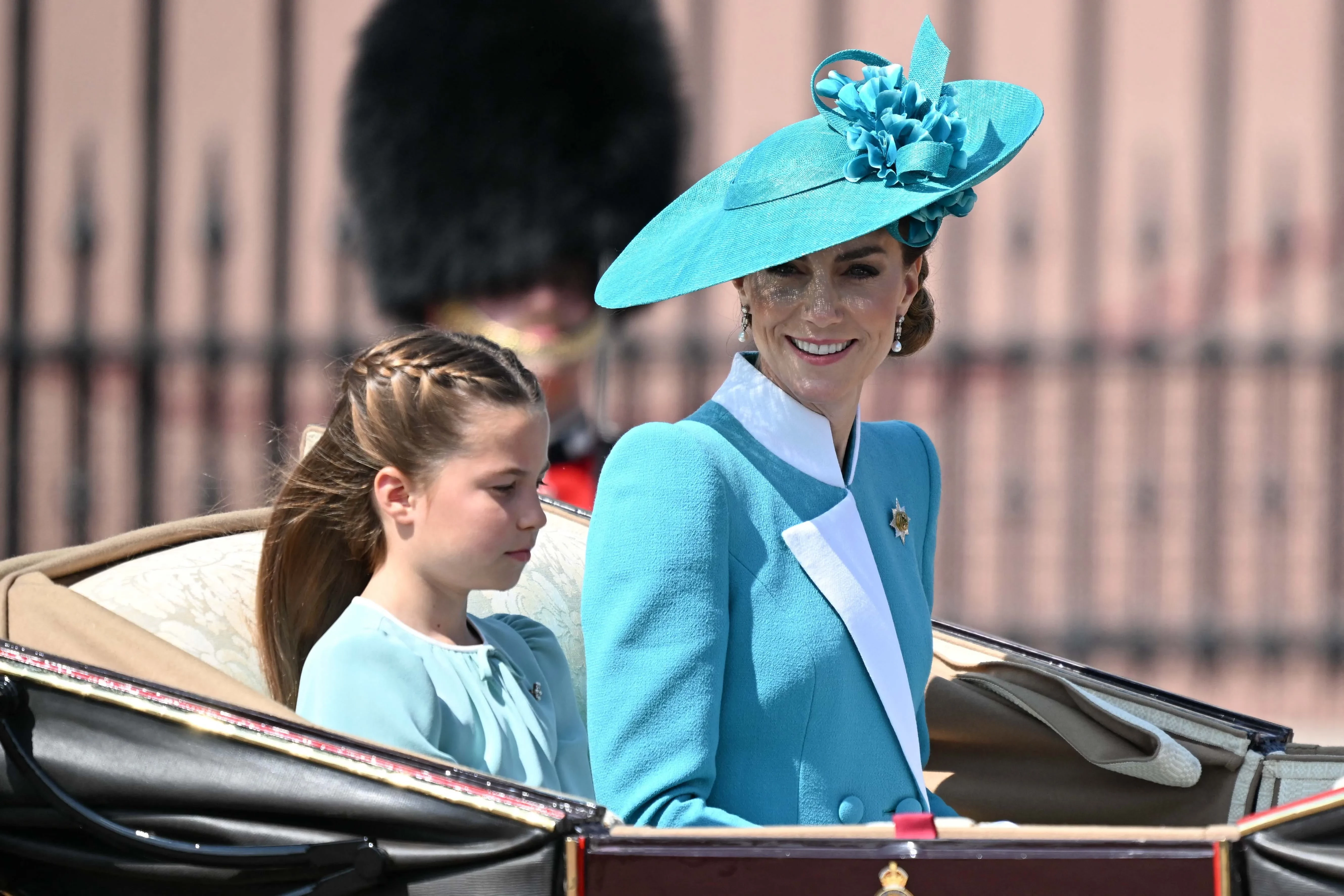 Кейт Миддлтон с детьмиПринц Уильям по традиции был в форме и верхом на лошади, а его супруга ехала в карете вместе с их тремя детьми: принцами Джорджем и Луи и принцессой Шарлоттой, на которой было платье в тон наряда ее матери. Карл III тоже предпочел занять место в карете из-за состояния здоровья: монарх сейчас лечится от онкологического заболевания.