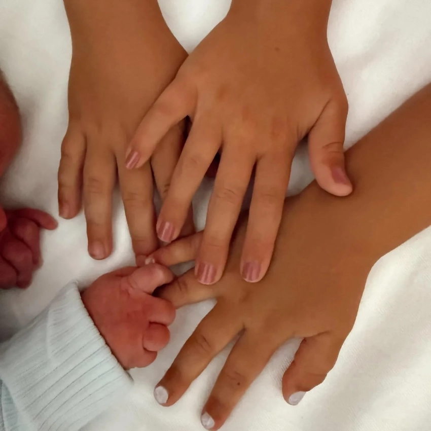 На снимке запечатлены руки маленькой дочери и старших детей Гризманна. "15 июня родилась Шай Гризманн Чоперена — недостающий кусочек нашего пазла", — подписал фотографию 34-летний футболист.