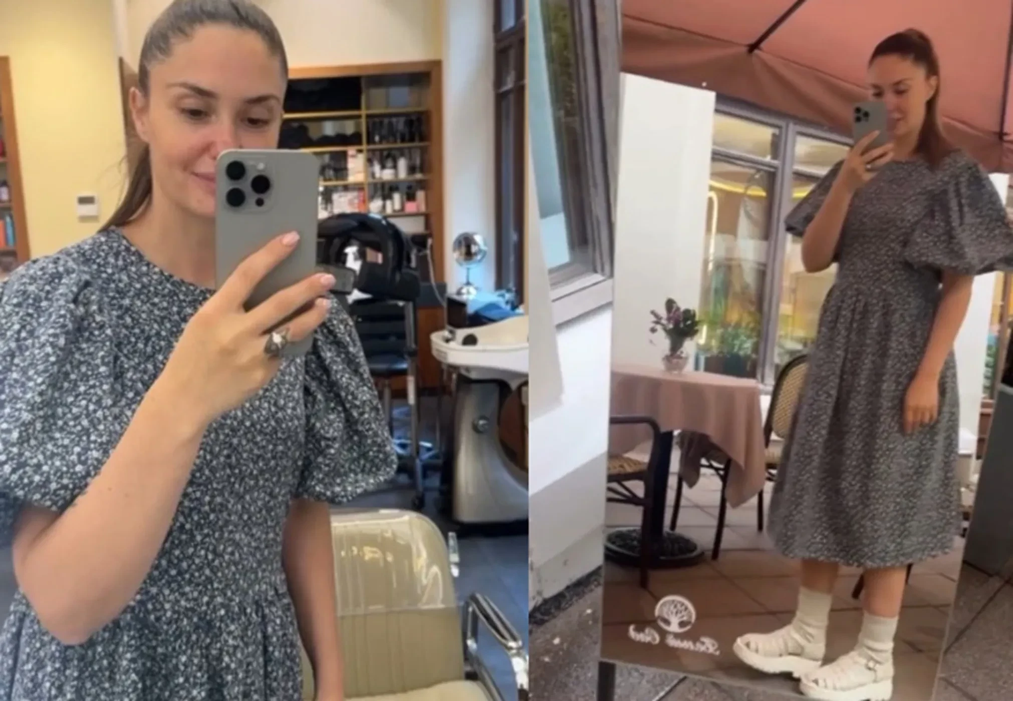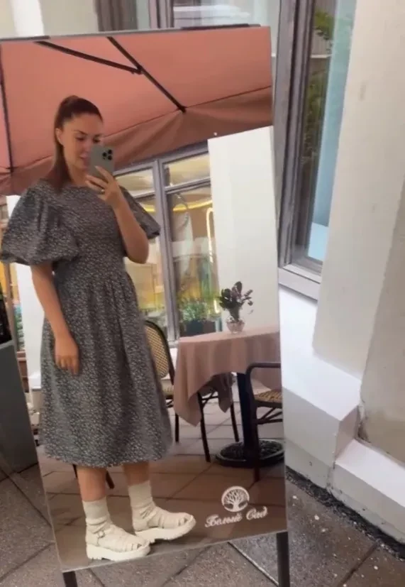 Муцениеце сняла своё отражение в зеркале, показав себя с разных ракурсов, — в свободном в области талии платье. В сети обратили внимание, что такой фасон часто выбирают именно беременные.