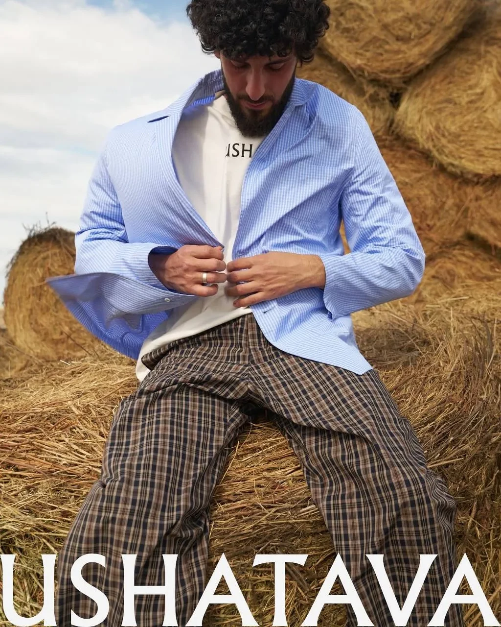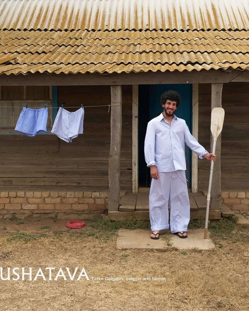 Ushatava сняли в кампейне популярного блогера Тимура Далгатова, который прославился своими рилсами* о жизни на ферме. Он прорекламировал коллекцию бренда Cruise Drop в рамках линии Garderobe SS25.