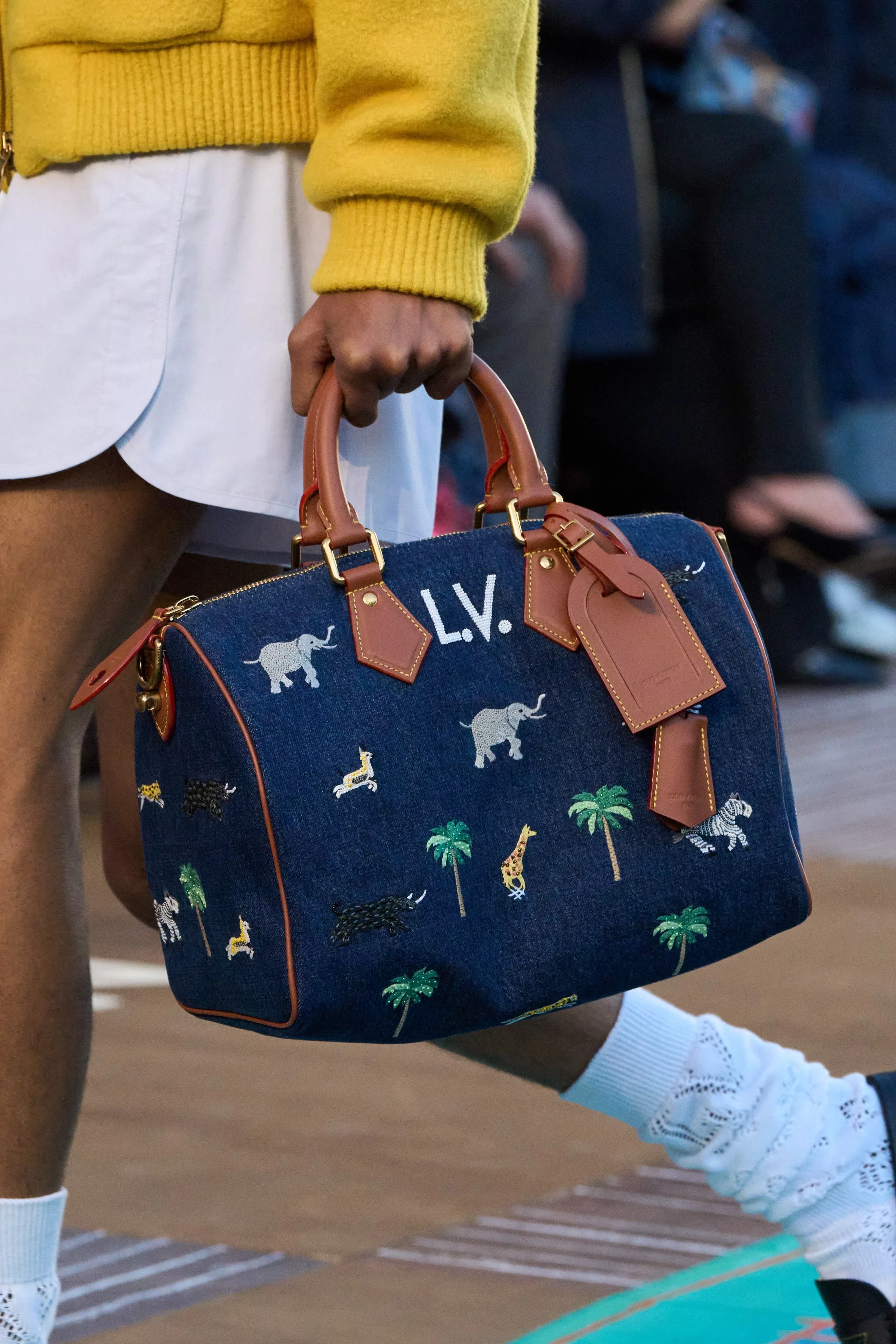 A$AP NastПоказ летней мужской коллекции Louis Vuitton прошёл в парижском центре искусств и культуры Помпиду. На её создание 52-летнего Фаррелла Уильямса вдохновила поездка в Индию. Модели выходили на подиум в образах с принтами пальм, антилоп, зебр и других животных, в пуховиках с вышивкой бисером и драгоценными камнями, а ярким акцентом в коллекции стали сумки в виде лягушек и с анималистичными принтами.