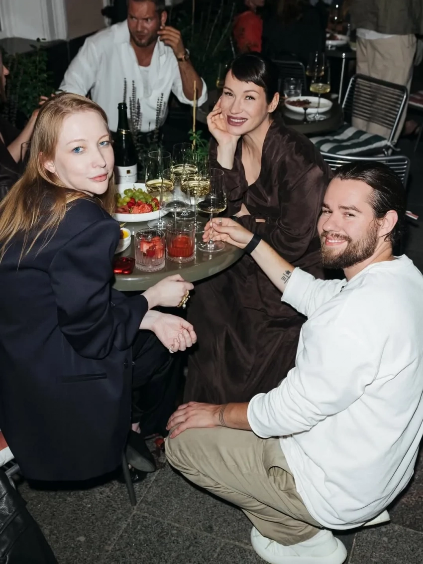 Софья Эрнст, Павел Табаков с девушкой, Игорь Верник и бывший муж Дмитрий Ендальцев на дне рождения Ани Чиповской