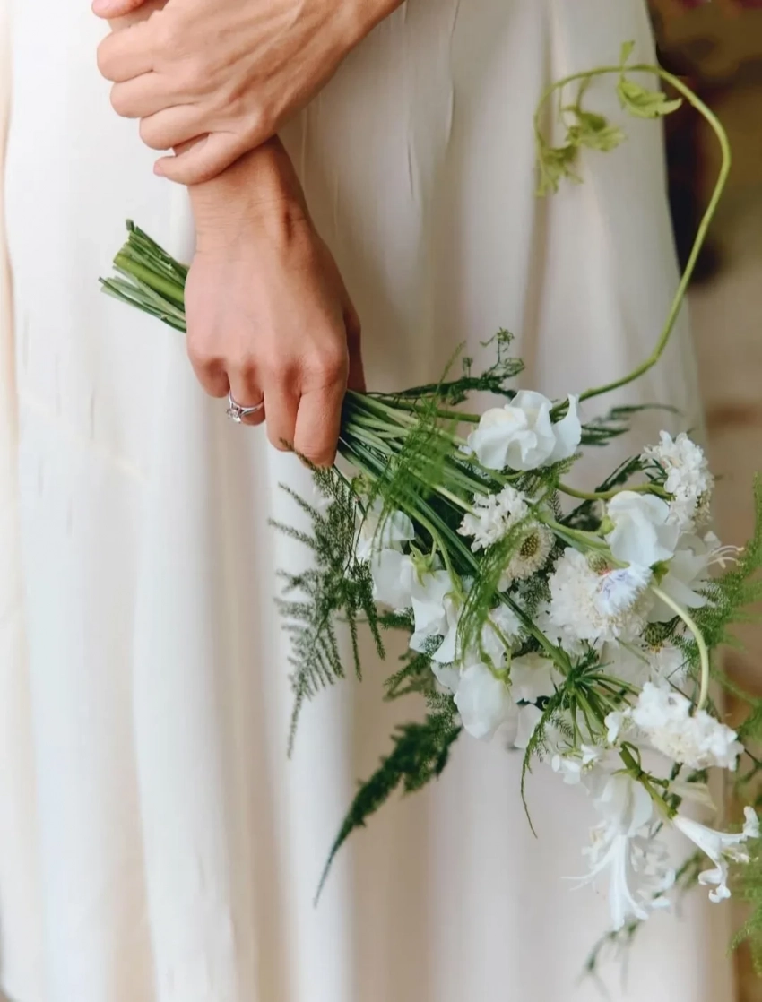 На снимках можно увидеть саму Ксению в свадебном платье Prada, а также букет невесты вблизи и (частично) праздничный стол. Фотографию жениха Соловьёва в подборку не включила.