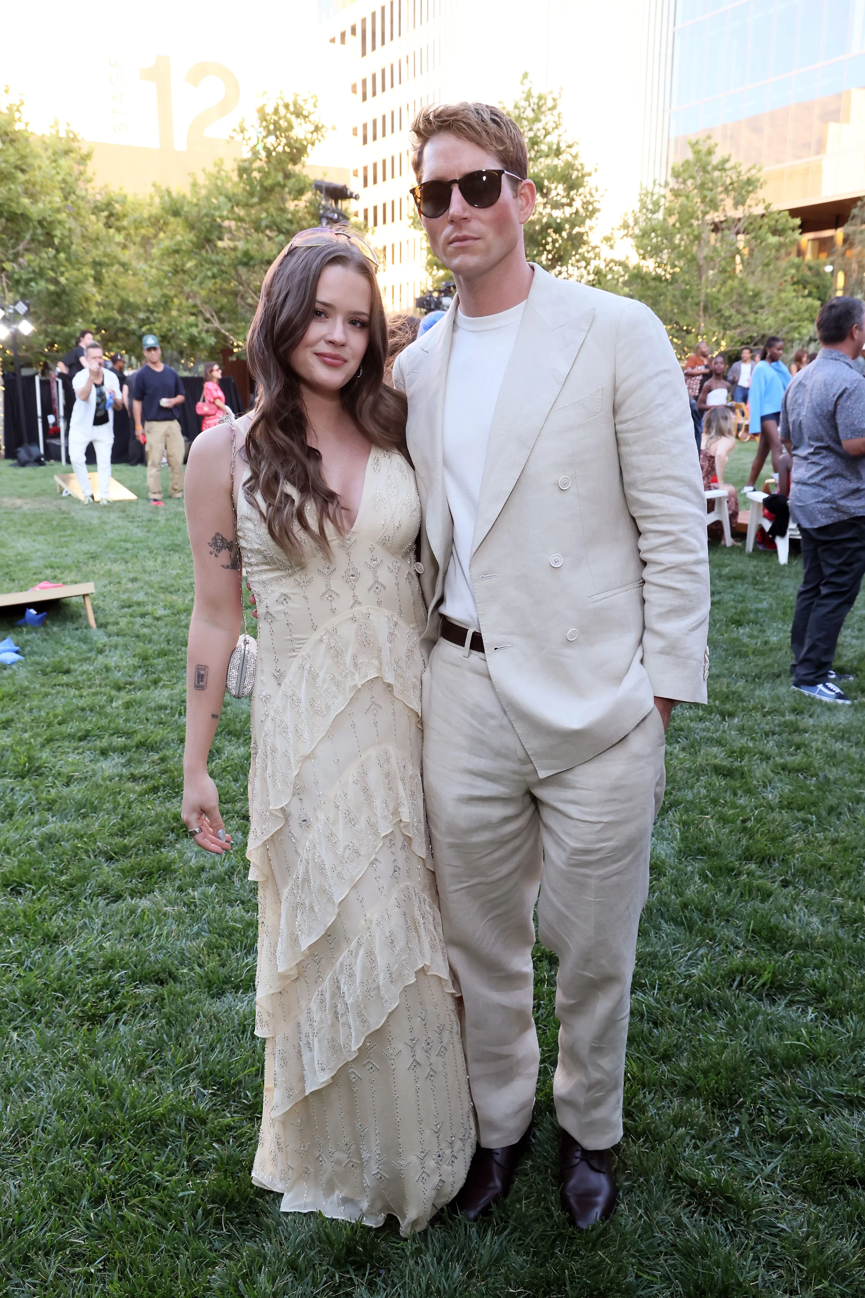 Дакота Брубейкер и Ава ФилиппАва появилась в платье молочного цвета с оборками, дополнив образ серебристыми босоножками. Дакота выбрал для мероприятия светлый костюм и белую футболку.