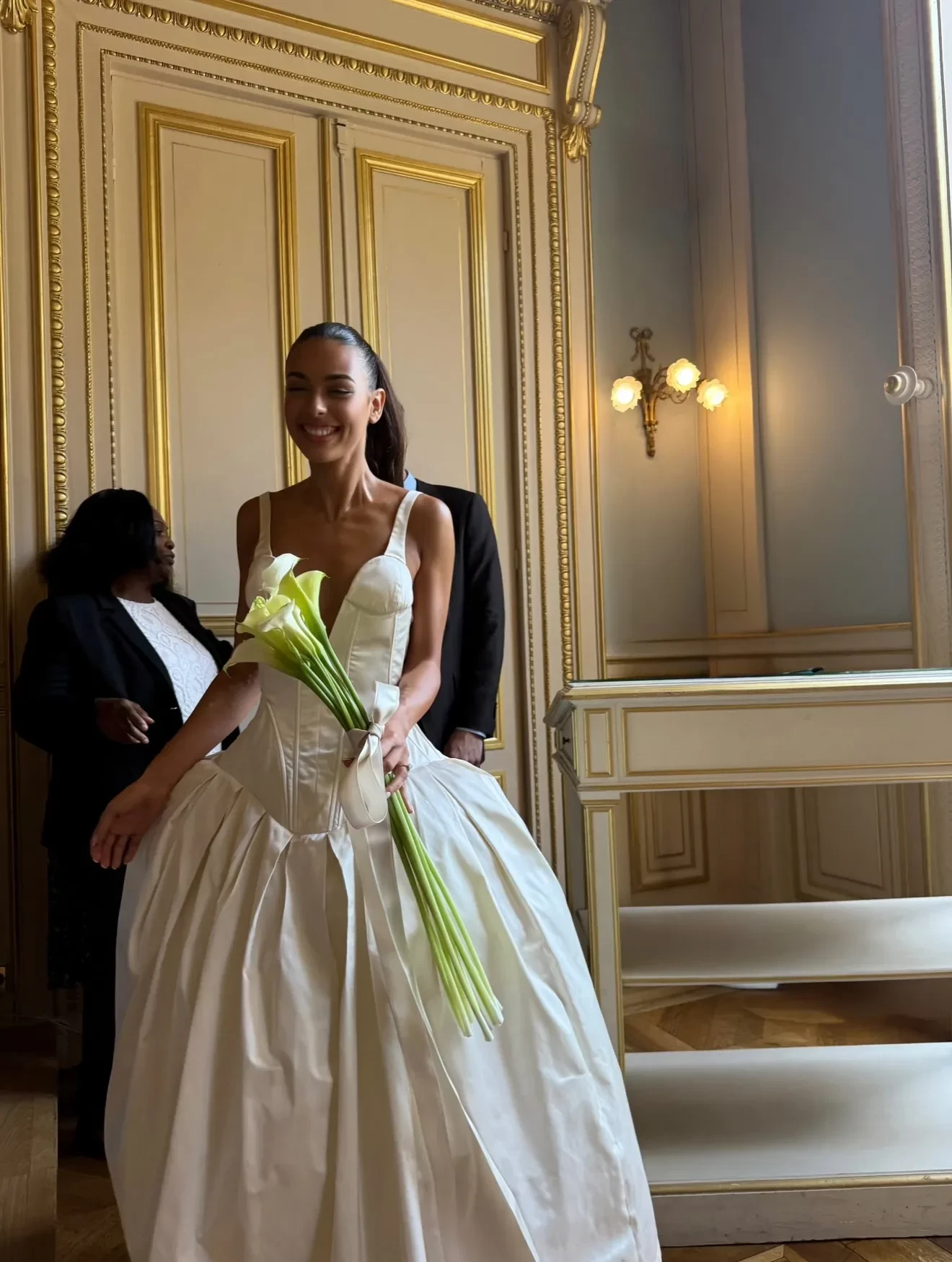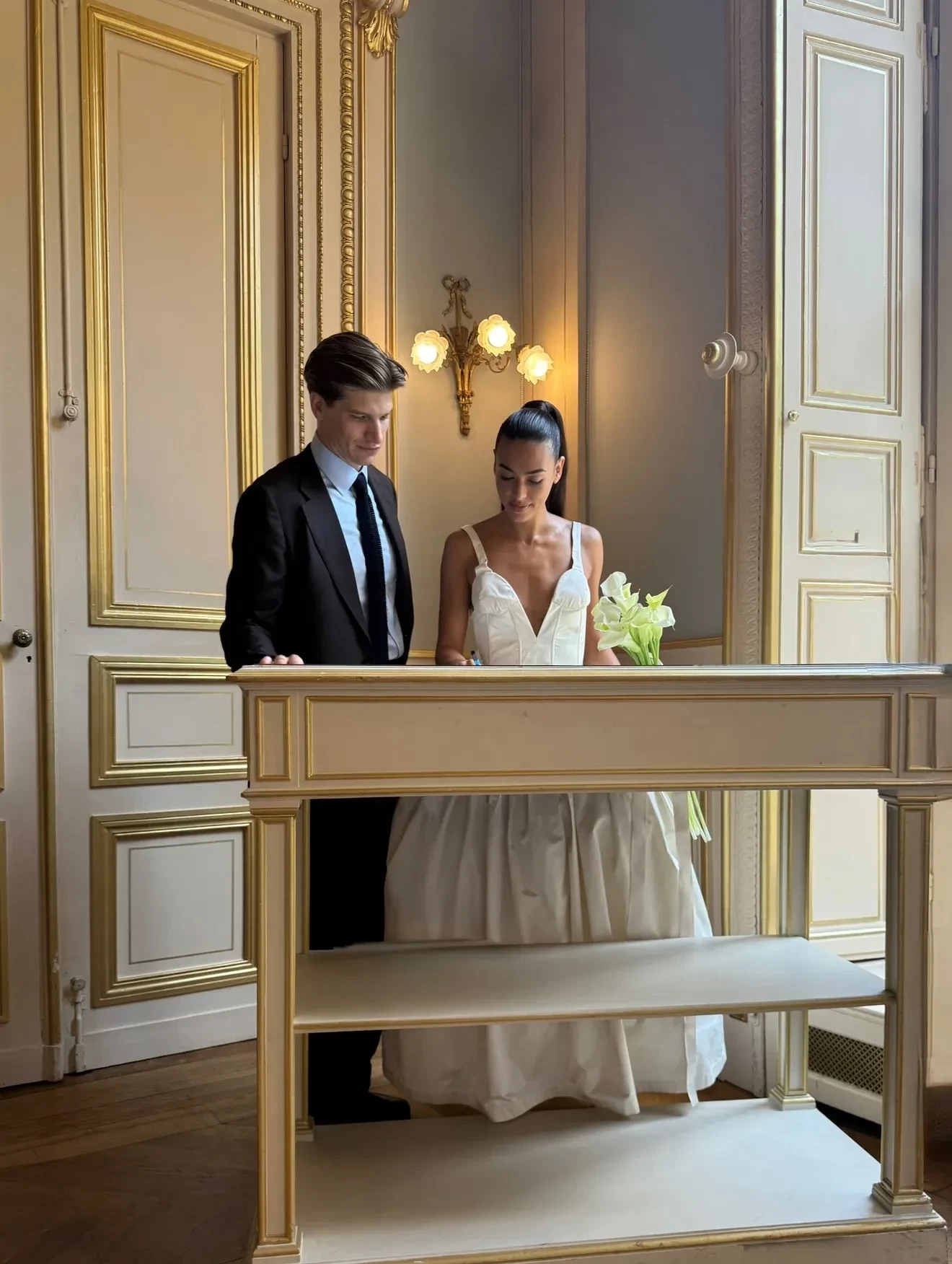 Для церемонии Рози выбрала длинное пудрово-розовое платье с накидкой. Изабелла была одета в белое платье с рюшами и обувь в тон. "Поздравляю эту великолепную пару. Я очень горжусь вами обоими. Желаю вам любви на всю жизнь", — написала 38-летняя модель, обращаясь к новобрачным.