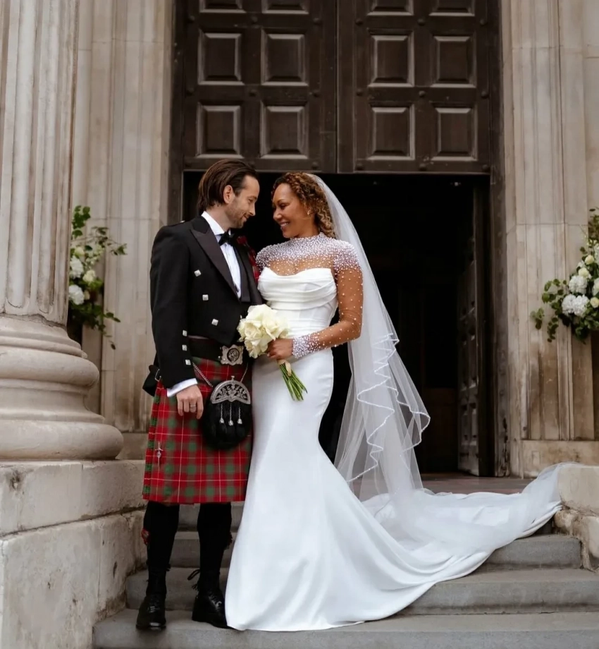 Торжество прошло в соборе Святого Павла в Лондоне. Невеста прошла к алтарю в классическом белом свадебном платье, а на женихе был традиционный шотландский килт.